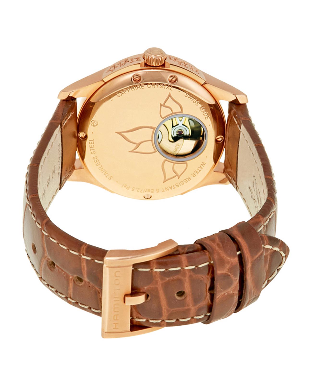 Женские швейцарские механические часы с автоматическим подзаводом Hamilton Jazzmaster Lady Auto H32345983. Корпус часов изготовлен из нержавеющей стали с PVD-покрытиемPVDУльтратонкое покрытие наносится в технике вакуумного напыления, сочетает в себе нитрид титана особой прочности со слоем золота или оксида хрома. Несёт в себе декоративную или защитную функцию.. Сапфировое стеклоСапфировое стеклоПрочный и надёжный материал из кристалла сапфира синтетического происхождения, характеризующийся особой твёрдостью и устойчивостью к царапинам и повреждениям. устойчивое к мелким механическим повреждениям. Кожаный ремешок на стандартной застёжке. Класс водозащиты: 50 метров, позволит защитить корпус от случайных брызг или капель дождя.