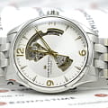 Часы Hamilton Jazzmaster Open Heart Auto H32705151 действительно оснащены стальным браслетом с застёжкой бабочкаЗастёжка "бабочка"Такой вид застёжки дополняется предохранителями, помогающими избежать случайного раскрытия браслета. Обладают изящным исполнением. . Корпус диаметром 42 мм выполнен из нержавеющей стали, а серебристый циферблат защищён сапфировым стекломСапфировое стеклоПрочный и надёжный материал из кристалла сапфира синтетического происхождения, характеризующийся особой твёрдостью и устойчивостью к царапинам и повреждениям. с антибликовым покрытиемАнтибликовое покрытиеСлой оксида металла в 0,13-0,3 микрон, благодаря которому стекло часов не бликует и не отражает свет. Антибликовое покрытие уменьшает отражение света в 10 раз, обеспечивая отличную читаемость показателей циферблата..