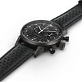 Hamilton Intra-Matic Auto Chrono H38446730 — выразительный хронограф с насыщенной винтажной эстетикой и современным техническим исполнением. Корпус диаметром 40 мм выполнен из нержавеющей стали с PVD-покрытиемPVDУльтратонкое покрытие наносится в технике вакуумного напыления, сочетает в себе нитрид титана особой прочности со слоем золота или оксида хрома. Несёт в себе декоративную или защитную функцию. чёрного цвета, придающим часам элегантность и строгость. Циферблат защищён выпуклым сапфировым стекломСапфировое стеклоПрочный и надёжный материал из кристалла сапфира синтетического происхождения, характеризующийся особой твёрдостью и устойчивостью к царапинам и повреждениям. с антибликовым покрытиемАнтибликовое покрытиеСлой оксида металла в 0,13-0,3 микрон, благодаря которому стекло часов не бликует и не отражает свет. Антибликовое покрытие уменьшает отражение света в 10 раз, обеспечивая отличную читаемость показателей циферблата., устойчивым к царапинам и бликам. Чёрный матовый циферблат оформлен в стиле «панда» с двумя белыми субциферблатами: малой секундной стрелкой и 30-минутным счётчиком. Указатели и стрелки покрыты люминесцентным покрытиемЛюминесцентное покрытиеПозволяет считывать показания времени в темноте. Производители наносят на стрелки, часовые индексы, безель или поверхность циферблата светонакопительный состав, дающий холодное свечение. для хорошей читаемости в тёмное время. Также присутствует тахиметрическая шкала и окно даты на «6 часах». Модель оснащена автоматическим хронографомХронографФункция позволяет измерять отрезки времени с особой точностью: часы, минуты, секунды. Верным признаком хронографа является наличие на циферблате 3 дополнительных окошек-счётчиков. калибра H-31 (на базе ETA/Valjoux 7753) с запасом хода до 60 часов. Часы комплектуются перфорированным чёрным кожаным ремешком в спортивном стиле с классической застёжкой-пряжкой. Водонепроницаемость 100 метров делает модель подходящей как для повседневного ношения, так и для активного образа жизни. Intra-Matic Auto Chrono — идеальный выбор для тех, кто ценит винтажный стиль, функциональность и швейцарскую механику.