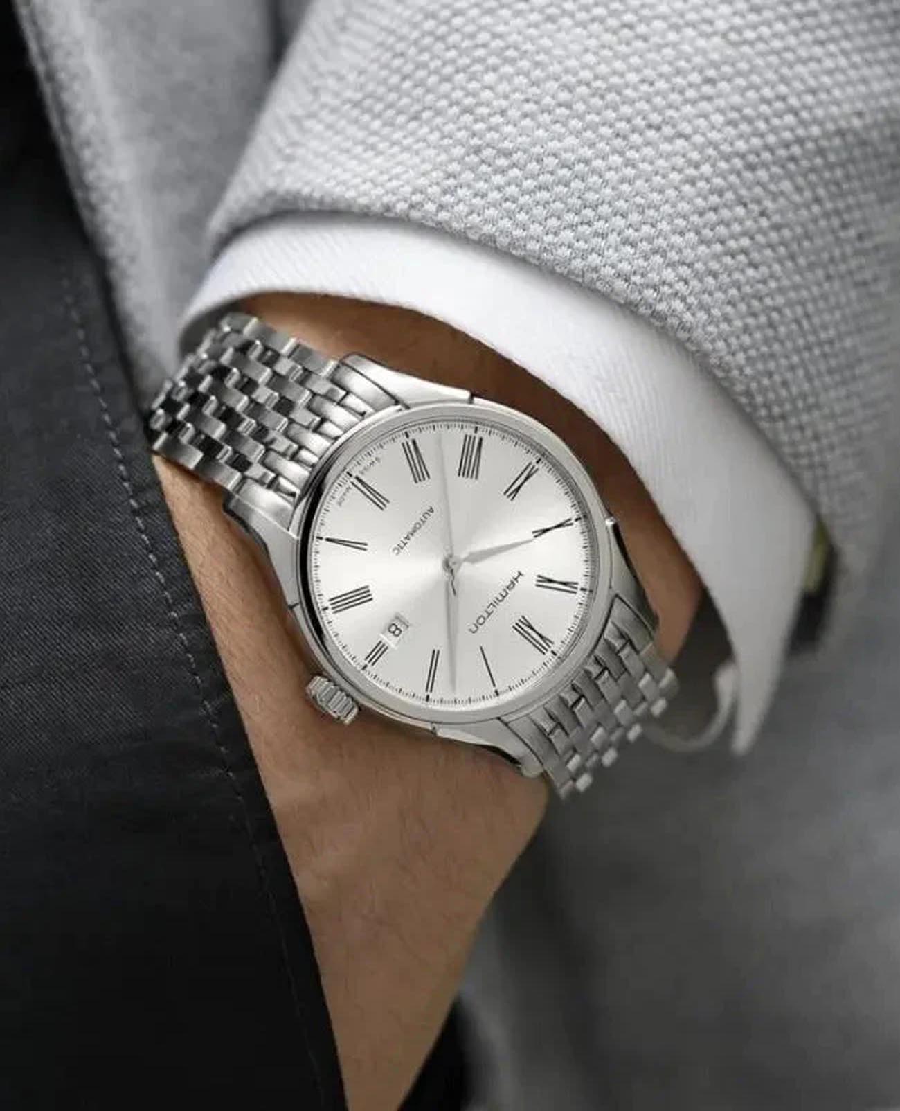 Мужские наручные часы Hamilton American Classic Valiant Auto H39515154 с автоматическим механизмом. Корпус часов выполнен из нержавеющей стали. Стальной браслет на застёжке-бабочке с кнопкамиЗастёжка "бабочка"Такой вид застёжки дополняется предохранителями, помогающими избежать случайного раскрытия браслета. Обладают изящным исполнением. . Сапфировое стеклоСапфировое стеклоПрочный и надёжный материал из кристалла сапфира синтетического происхождения, характеризующийся особой твёрдостью и устойчивостью к царапинам и повреждениям. с антибликовым покрытием. Окошко даты находится в положении 3 часа. Уровень влагозащиты: 50 метров, позволит защитить корпус от случайных брызг или капель дождя.