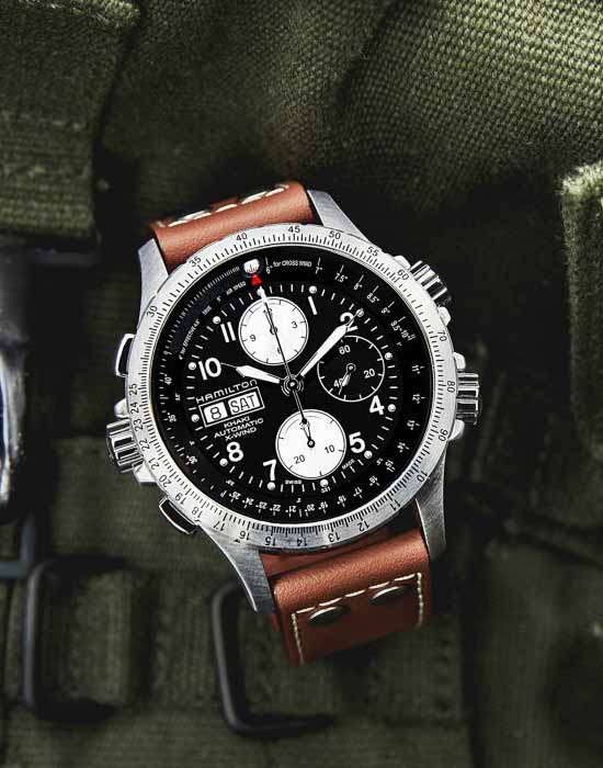 Инновации, рассчитанный риск и точность. Именно этими крайне важными для пилотов качествами наделены все часы Hamilton. Впервые оснастившая часы функция расчета угла сноса, представленная в моделях Khaki X-Wind, позволяет пилоту во время полета высчитать и отметить поправку на ветер. Техничный дизайн и автоматический механизм, в полной мере соответствующий требованиям поклонников авиации, превращают часы в идеального ассистента для повседневной жизни. Представлены в фильме «День независимости: Возрождение» (2016) на Лиаме Хемсворте в роли Джейка Моррисона.