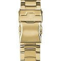 Корпус диаметром 41 мм изготовлен из гипоаллергенной нержавеющей стали. Золотистого цвета безельБезельВнешний ободок, закрепляющий стекло. В спортивных часах так называется поворотное кольцо с делениями на циферблате, выполняет роль таймера – замеряет отрезки времени на шкале. Неподвижный безель – элемент декора. Однонаправленно вращающийся безель на дайверских часах позволяет фиксировать моменты погружения и выныривания на поверхность. из стали с PVD-покрытиемPVDУльтратонкое покрытие наносится в технике вакуумного напыления, сочетает в себе нитрид титана особой прочности со слоем золота или оксида хрома. Несёт в себе декоративную или защитную функцию.. В модели установлено ударопрочное минеральное стеклоМинеральное стеклоМинеральное стекло представляет собой искусственно выращенный минерал кварца. Такое стекло отличается особой устойчивостью к повреждениям и царапинам. Уступает по некоторым качествам сапфировому стеклу. Crystex, что обеспечивает защиту от повреждений. Повышенная водостойкость 10 атмосфер дает возможность не снимать любимый аксессуар даже во время плавания.