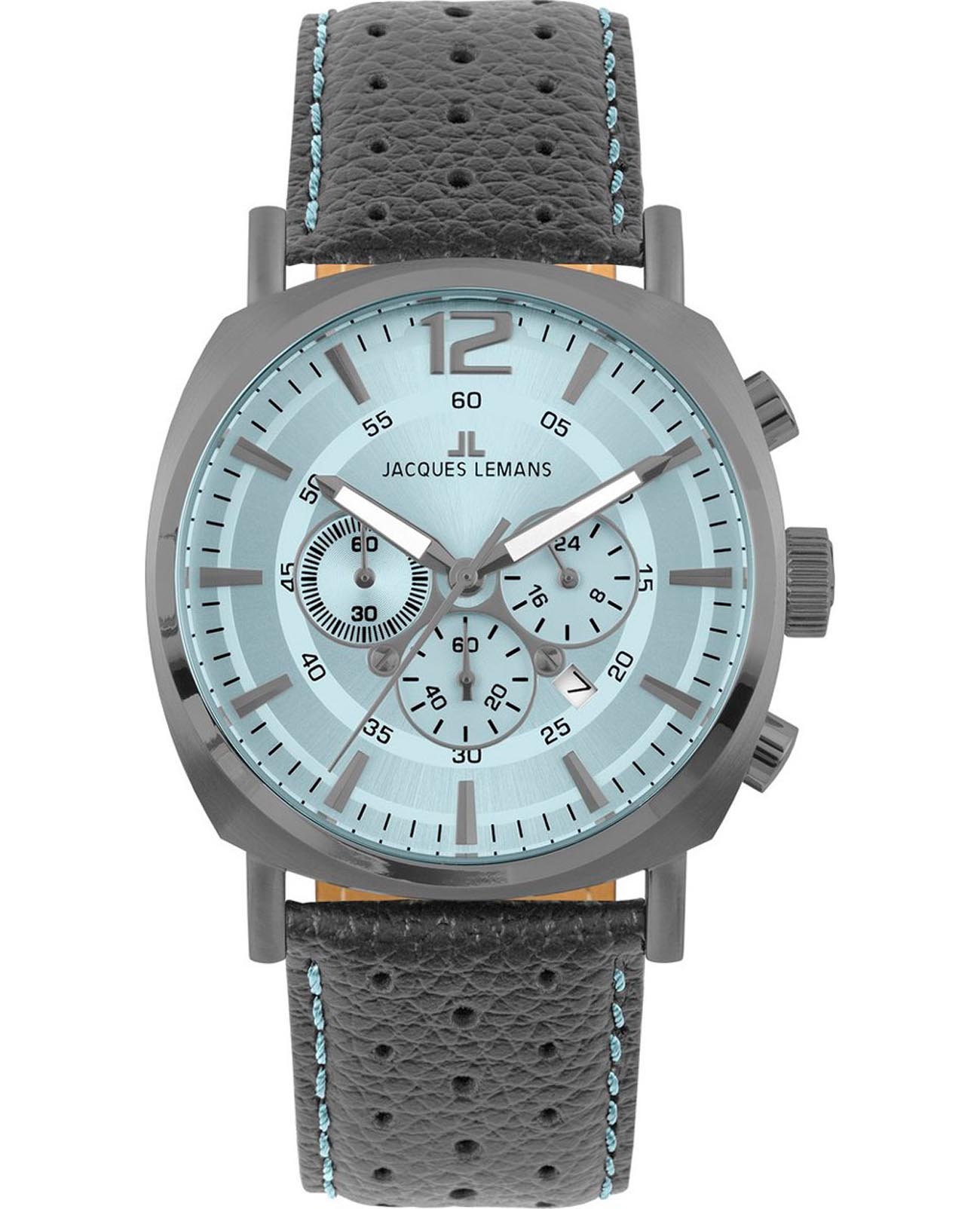 Мужские наручные часы c хронографомХронографФункция позволяет измерять отрезки времени с особой точностью: часы, минуты, секунды. Верным признаком хронографа является наличие на циферблате 3 дополнительных окошек-счётчиков. Jacques Lemans Lugano 1-1645S, кварцевый механизм с высокой точностью. Минеральное стеклоМинеральное стеклоМинеральное стекло представляет собой искусственно выращенный минерал кварца. Такое стекло отличается особой устойчивостью к повреждениям и царапинам. Уступает по некоторым качествам сапфировому стеклу. устойчивое к мелким механическим повреждениям. Класс водозащиты: 100 метров, позволит плавать, нырять и заниматься другими водными видами спорта. Корпус часов изготовлен из стали с PVD-покрытиемPVDУльтратонкое покрытие наносится в технике вакуумного напыления, сочетает в себе нитрид титана особой прочности со слоем золота или оксида хрома. Несёт в себе декоративную или защитную функцию.. Кожаный ремешок на стандартной застёжке. Стрелки с люминесцентным покрытиемЛюминесцентное покрытиеПозволяет считывать показания времени в темноте. Производители наносят на стрелки, часовые индексы, безель или поверхность циферблата светонакопительный состав, дающий холодное свечение..