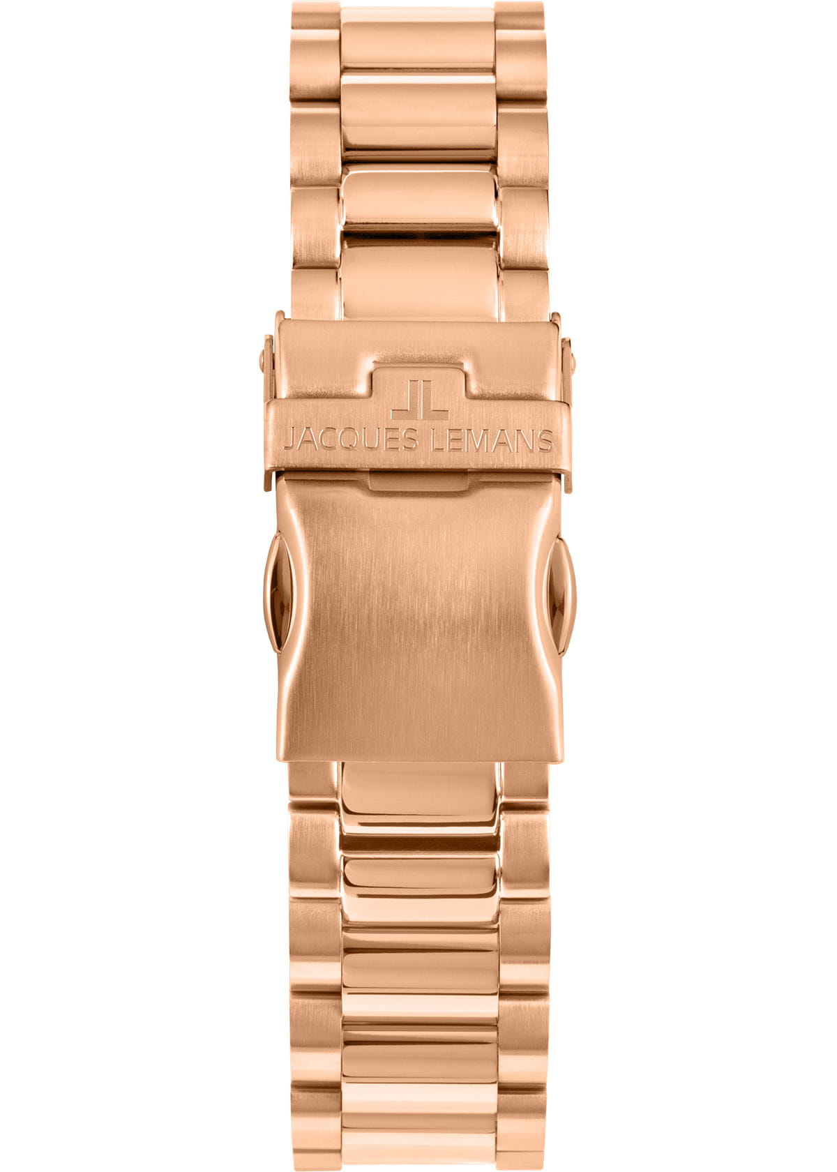 Женские австрийские часы с хронографом Jacques Lemans Design Collection 1-2051B, кварцевый механизм с высокой точностью. Класс водозащиты: 100 метров, позволит плавать, нырять и заниматься другими водными видами спорта. Корпус часов изготовлен из стали, золотистого цвета.