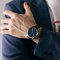 Водозащита 5 ATM защищает часы от брызг и дождя. Кожаный ремешок синего цвета с классической застёжкой обеспечивает комфортное ношение и надёжную фиксацию на запястье.