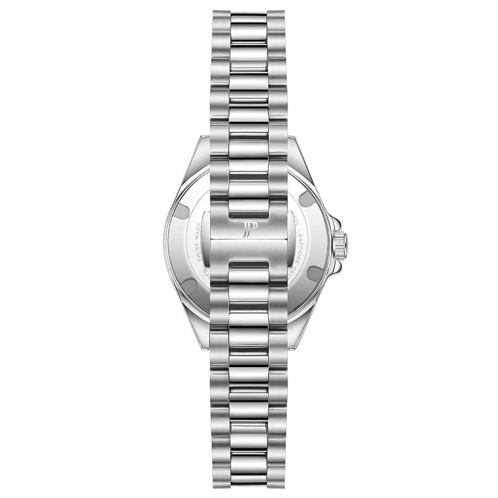 Часы Jacques Philippe JPQLS731386 из коллекции Infinitum — элегантные женские часы, сочетающие в себе швейцарское качество и современный дизайн. Корпус диаметром 30 мм выполнен из нержавеющей стали, а циферблат защищён сапфировым стекломСапфировое стеклоПрочный и надёжный материал из кристалла сапфира синтетического происхождения, характеризующийся особой твёрдостью и устойчивостью к царапинам и повреждениям.. Циферблат инкрустирован кристаллами. Внутри установлен швейцарский кварцевый механизм, обеспечивающий высокую точность хода. Водозащита 100 метров (10 ATM) позволяет использовать часы для плавания и других водных видов спорта. Браслет из нержавеющей стали с застёжкой бабочкаЗастёжка "бабочка"Такой вид застёжки дополняется предохранителями, помогающими избежать случайного раскрытия браслета. Обладают изящным исполнением. обеспечивает комфортное ношение и надёжную фиксацию на запястье. Эти часы идеально подойдут для тех, кто ценит сочетание классического стиля и современных технологий.
