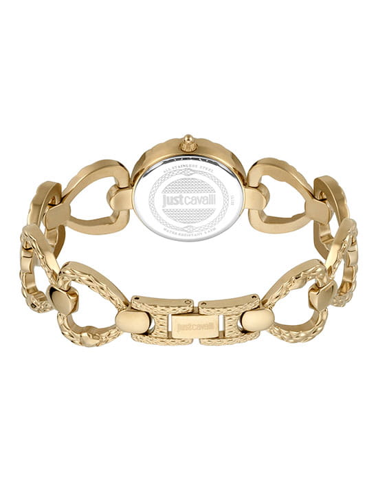 Женские итальянские часы с кристаллами Just Cavalli JC1L132M0075, кварцевый механизм с высокой точностью. Класс водозащиты: 50 метров, позволит защитить корпус от случайных брызг или капель дождя. Корпус часов изготовлен из стали, золотистого цвета.