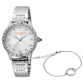 Женские итальянские часы с кристаллами Just Cavalli Animalier JC1L144M0045, кварцевый механизм с высокой точностью. Класс водозащиты: 50 метров, позволит защитить корпус от случайных брызг или капель дождя. Корпус часов изготовлен из стали, серебристого цвета.