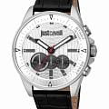 JUST CAVALLI JC1G348L0015 — стильные итальянские часы с функцией хронографаХронографФункция позволяет измерять отрезки времени с особой точностью: часы, минуты, секунды. Верным признаком хронографа является наличие на циферблате 3 дополнительных окошек-счётчиков., которые сочетают в себе элегантность и современный функционал. Круглый корпус диаметром 45 мм выполнен из нержавеющей стали, толщина корпуса составляет 11 мм, что придает модели выразительный внешний вид и надежную защиту от внешних воздействий. Часы оснащены кварцевым механизмом, также обладают функцией отображения даты, что делает их удобными для ежедневного использования. Минеральное стеклоМинеральное стеклоМинеральное стекло представляет собой искусственно выращенный минерал кварца. Такое стекло отличается особой устойчивостью к повреждениям и царапинам. Уступает по некоторым качествам сапфировому стеклу. защищает часы от царапин, а водозащита 100 метров идеально подходит для повседневного ношения. Стрелки с люминесцентным покрытиемЛюминесцентное покрытиеПозволяет считывать показания времени в темноте. Производители наносят на стрелки, часовые индексы, безель или поверхность циферблата светонакопительный состав, дающий холодное свечение.. Кожаный ремешок на стандартной застёжке обеспечивает комфортное ношение.