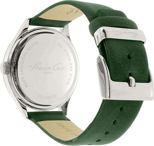Мужские кварцевые часы Kenneth Cole из коллекции Classic — это утончённый аксессуар, сочетающий минимализм и элегантность. Корпус диаметром 42 мм выполнен из нержавеющей стали 316L. Циферблат серебристого цвета оформлен аккуратными индексами, подчёркивающими современный стиль. Окошко даты расположено в положении 3 часов. Циферблат защищён минеральным стекломМинеральное стеклоМинеральное стекло представляет собой искусственно выращенный минерал кварца. Такое стекло отличается особой устойчивостью к повреждениям и царапинам. Уступает по некоторым качествам сапфировому стеклу.. Часы оснащены кожаным ремешком зелёного цвета с классической пряжкой. Водонепроницаемость 30 м позволяет использовать часы в повседневных условиях, защищая от случайных брызг и капель дождя. Рифлёная заводная головка добавляет детали дизайну. Сочетание лаконичного дизайна и высокого качества делает эти часы универсальным выбором для любого образа.