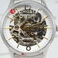 Женские механические часы с автоподзаводом Kenneth Cole KCWLL0047401 — это элегантный аксессуар, сочетающий женственность и современный дизайн. Корпус диаметром 36 мм выполнен из нержавеющей стали. Циферблат белого цвета частично скелетонизирован, что позволяет наблюдать за работой механизма, добавляя модели инженерной изысканности. Циферблат защищён минеральным стекломМинеральное стеклоМинеральное стекло представляет собой искусственно выращенный минерал кварца. Такое стекло отличается особой устойчивостью к повреждениям и царапинам. Уступает по некоторым качествам сапфировому стеклу. и оформлен метками в виде арабских цифр и штрихов. Часы оснащены стальным браслетом с раскладной застёжкойРаскладная застёжкаТакой тип застёжки используется только на браслетах из металла. Она никогда не раскрывается полностью, происходит разделение на 2 и более частей. Раскладывающая застёжка снизит вероятность потери часов к минимуму.. Водонепроницаемость 30 м позволяет использовать часы в повседневных условиях, защищая от случайных брызг и капель дождя. Сочетание лаконичного стиля и надёжного механизма делает эти часы универсальным выбором для повседневного и делового образа.
