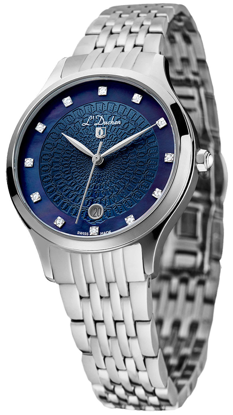 Женские швейцарские часы L'Duchen Grace D 791.10.37, кварцевый механизм с высокой точностью. Сапфировое стеклоСапфировое стеклоПрочный и надёжный материал из кристалла сапфира синтетического происхождения, характеризующийся особой твёрдостью и устойчивостью к царапинам и повреждениям. устойчивое к появлению царапин, обладающее высокой прозрачностью. Корпус часов выполнен из нержавеющей стали. Окошко даты находится в положении 6 часов. Класс водозащиты: 50 метров, позволит защитить корпус от случайных брызг или капель дождя. Стальной браслет на застёжке-бабочке с кнопкамиЗастёжка "бабочка"Такой вид застёжки дополняется предохранителями, помогающими избежать случайного раскрытия браслета. Обладают изящным исполнением. .