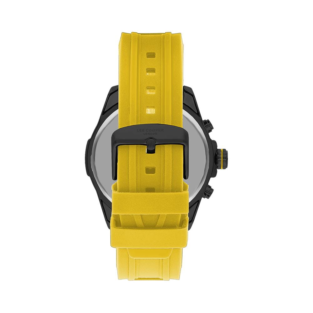 Lee Cooper LC07432.657 — элегантная модель с функциональными возможностями для повседневного использования. Круглый корпус из нержавеющей стали диаметром 48 мм с IP-покрытиемIP-покрытиеМетод ионного напыления. Демонстрирует повышенную устойчивость к истиранию, окислению и химическим веществам. Под воздействием высокого давления и температуры около 1500°C молекулы металла надёжно соединяются с частицами корпуса часов. придаёт часам классический и современный вид. Циферблат защищён минеральным стекломМинеральное стеклоМинеральное стекло представляет собой искусственно выращенный минерал кварца. Такое стекло отличается особой устойчивостью к повреждениям и царапинам. Уступает по некоторым качествам сапфировому стеклу., устойчивым к царапинам, хорошо может выдержать небольшие удары и падения. Часы работают на кварцевом механизме, обеспечивающем точность хода. Каучуковый ремешок желтого цвета на стандартной застёжке гарантирует удобную посадку и надёжную фиксацию на запястье. Водозащита 50 метров защищает часы от брызг и дождя, делая их подходящими для повседневного использования. Стрелки и метки покрыты люминесцентным покрытиемЛюминесцентное покрытиеПозволяет считывать показания времени в темноте. Производители наносят на стрелки, часовые индексы, безель или поверхность циферблата светонакопительный состав, дающий холодное свечение., обеспечивающим отличную читаемость в темноте.
