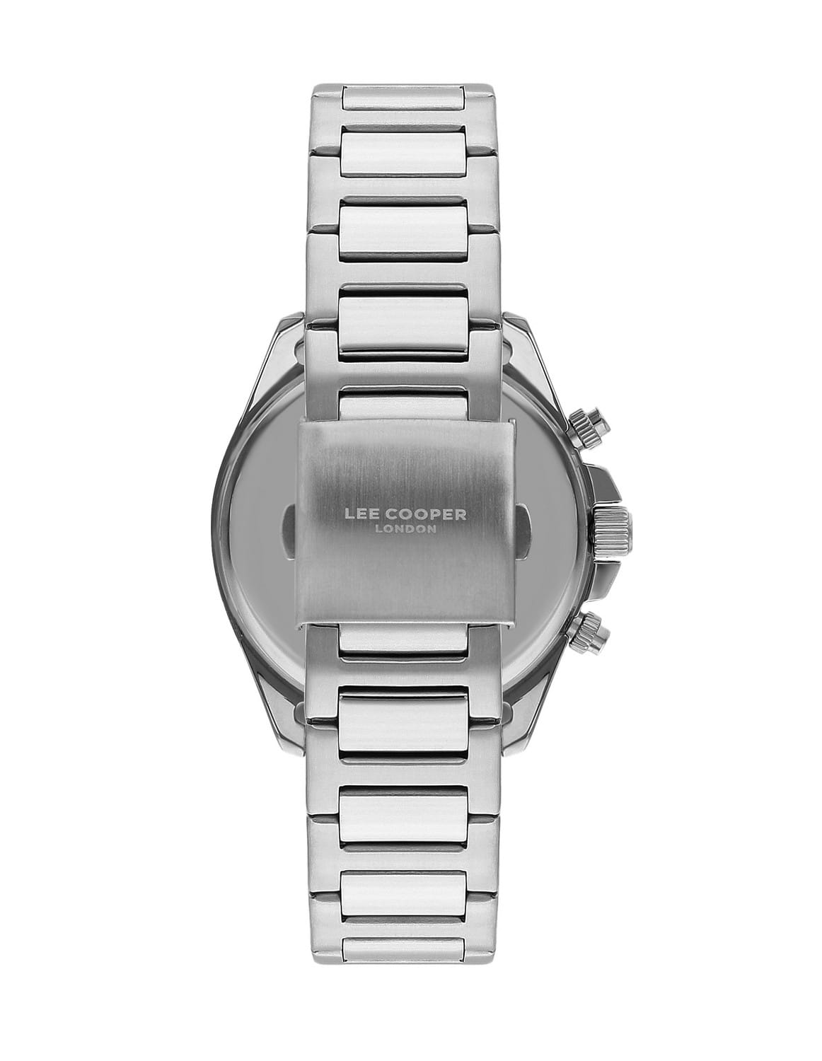 Мужские наручные часы Lee Cooper LC07829.350 оснащены точным кварцевым механизмом. Корпус часов выполнен из суперметалла с изысканным неподвижным безелемБезельВнешний ободок, закрепляющий стекло. В спортивных часах так называется поворотное кольцо с делениями на циферблате, выполняет роль таймера – замеряет отрезки времени на шкале. Неподвижный безель – элемент декора. Однонаправленно вращающийся безель на дайверских часах позволяет фиксировать моменты погружения и выныривания на поверхность. с IP-покрытиемIP-покрытиеМетод ионного напыления. Демонстрирует повышенную устойчивость к истиранию, окислению и химическим веществам. Под воздействием высокого давления и температуры около 1500°C молекулы металла надёжно соединяются с частицами корпуса часов. черного цвета, что делает их устойчивыми к внешним воздействиям и придает благородный вид. Изящный циферблат украшен классическими стрелками и индексами, гармонично дополняющими общий дизайн модели. Для защиты циферблата используется минеральное стеклоМинеральное стеклоМинеральное стекло представляет собой искусственно выращенный минерал кварца. Такое стекло отличается особой устойчивостью к повреждениям и царапинам. Уступает по некоторым качествам сапфировому стеклу., устойчивое к царапинам и механическим повреждениям. Циферблат с акцентными метками и стрелками с люминесцентным покрытиемЛюминесцентное покрытиеПозволяет считывать показания времени в темноте. Производители наносят на стрелки, часовые индексы, безель или поверхность циферблата светонакопительный состав, дающий холодное свечение. также оснащён вспомогательными индикаторами, включая 24-часовой формат времени, а также второй часовой поясВторой часовой поясФункция, позволяющая отображать время двух часовых поясов одновременно.. Браслет изготовлен из стали, создавая стильный и универсальный образ, и оснащен раскладной застёжкойРаскладная застёжкаТакой тип застёжки используется только на браслетах из металла. Она никогда не раскрывается полностью, происходит разделение на 2 и более частей. Раскладывающая застёжка снизит вероятность потери часов к минимуму., обеспечивающей комфортное и безопасное ношение. В нижней части расположено окошко даты, что делает модель ещё более практичной. Часы обладают водонепроницаемостью до 50 метров (5 АТМ), что позволяет использовать их в повседневной жизни, включая контакт с водой при мытье рук или дожде. Эти часы станут идеальным выбором для мужчин, ценящих стиль, качество и функциональность.