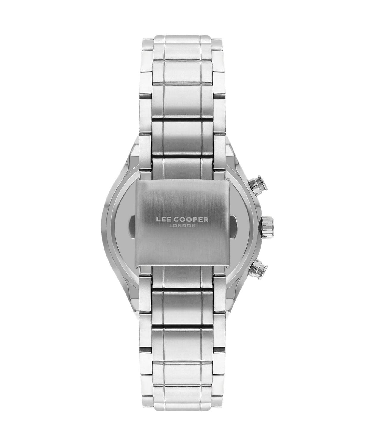 Мужские часы Lee Cooper LC07853.350 — это стильный аксессуар, сочетающий в себе классический дизайн и современные функции. Эти часы идеально подойдут для тех, кто ценит элегантность и практичность в повседневной жизни. Круглый корпус диаметром 43 мм выполнен из суперметалла серебристого цвета. Циферблат защищен минеральным стекломМинеральное стеклоМинеральное стекло представляет собой искусственно выращенный минерал кварца. Такое стекло отличается особой устойчивостью к повреждениям и царапинам. Уступает по некоторым качествам сапфировому стеклу., обеспечивающим устойчивость к царапинам. Часы оснащены надежным кварцевым механизмом, а элегантный стальной браслет на раскладной застёжкеРаскладная застёжкаТакой тип застёжки используется только на браслетах из металла. Она никогда не раскрывается полностью, происходит разделение на 2 и более частей. Раскладывающая застёжка снизит вероятность потери часов к минимуму. гарантирует комфортную посадку на запястье. Часы с люминесцентным покрытиемЛюминесцентное покрытиеПозволяет считывать показания времени в темноте. Производители наносят на стрелки, часовые индексы, безель или поверхность циферблата светонакопительный состав, дающий холодное свечение. позволяют легко считывать время даже в условиях недостаточного освещения. Окошко даты находится в положении 4 часов. Водозащита 50 метров позволит защитить корпус от случайных брызг или капель дождя. Мультифункциональная модель с 24-х часовым индикатором и хронографомХронографФункция позволяет измерять отрезки времени с особой точностью: часы, минуты, секунды. Верным признаком хронографа является наличие на циферблате 3 дополнительных окошек-счётчиков.. Lee Cooper — отличный выбор для тех, кто ценит утонченность и качество.