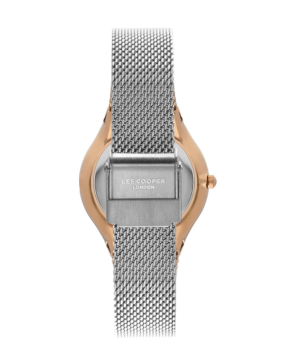 Женские часы Lee Cooper LC07862.530 — это стильное сочетание элегантности и современного дизайна. Изящный корпус диаметром 32 мм выполнен из суперметалла с IP-покрытиемIP-покрытиеМетод ионного напыления. Демонстрирует повышенную устойчивость к истиранию, окислению и химическим веществам. Под воздействием высокого давления и температуры около 1500°C молекулы металла надёжно соединяются с частицами корпуса часов. золотого цвета. Серый циферблат инкрустирован цирконами, что придает модели особый блеск и защищен минеральным стекломМинеральное стеклоМинеральное стекло представляет собой искусственно выращенный минерал кварца. Такое стекло отличается особой устойчивостью к повреждениям и царапинам. Уступает по некоторым качествам сапфировому стеклу., обеспечивающим устойчивость к царапинам. Центральные часовая, минутная стрелки. Часы оснащены надежным кварцевым механизмом. Стальной браслет с застежкой, выполненной в виде раскладного замкаРаскладной замокДанный вариант застежки используется только на часах с металлическим браслетом. Отличительная особенность такого крепления в том, что длина браслета становится универсальной и вы можете самостоятельно отрегулировать нужный вам размер – застежка просто двигается по браслету часов., гарантирующего комфортное и безопасное ношение. Водозащита 30 метров защищает модель от случайных брызг и дождя. Lee Cooper  — отличный выбор для тех, кто ценит утонченность и качество.