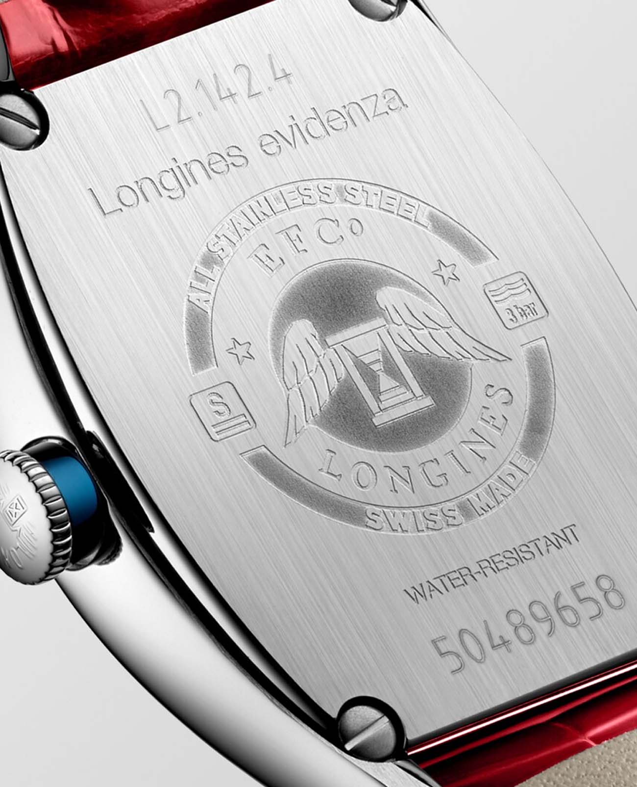 Женские швейцарские механические часы с автоподзаводом Longines Evidenza L2.142.4.76.2. Сапфировое стеклоСапфировое стеклоПрочный и надёжный материал из кристалла сапфира синтетического происхождения, характеризующийся особой твёрдостью и устойчивостью к царапинам и повреждениям. устойчивое к появлению царапин, обладающее высокой прозрачностью. Корпус часов изготовлен из нержавеющей стали. Нарисованные римские цифры. Окошко даты в положении 6 часов. Класс водозащиты: 30 метров, позволит защитить корпус от случайных брызг или капель дождя. Ремешок из кожи аллигатора на раскладной застёжкеРаскладная застёжкаТакой тип застёжки используется только на браслетах из металла. Она никогда не раскрывается полностью, происходит разделение на 2 и более частей. Раскладывающая застёжка снизит вероятность потери часов к минимуму..