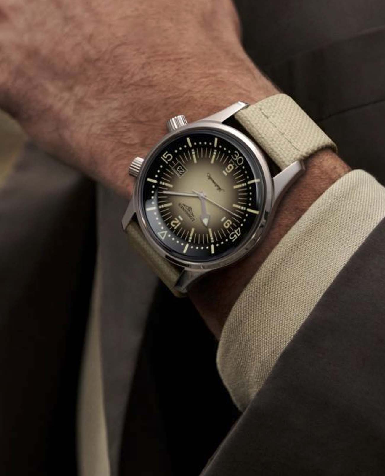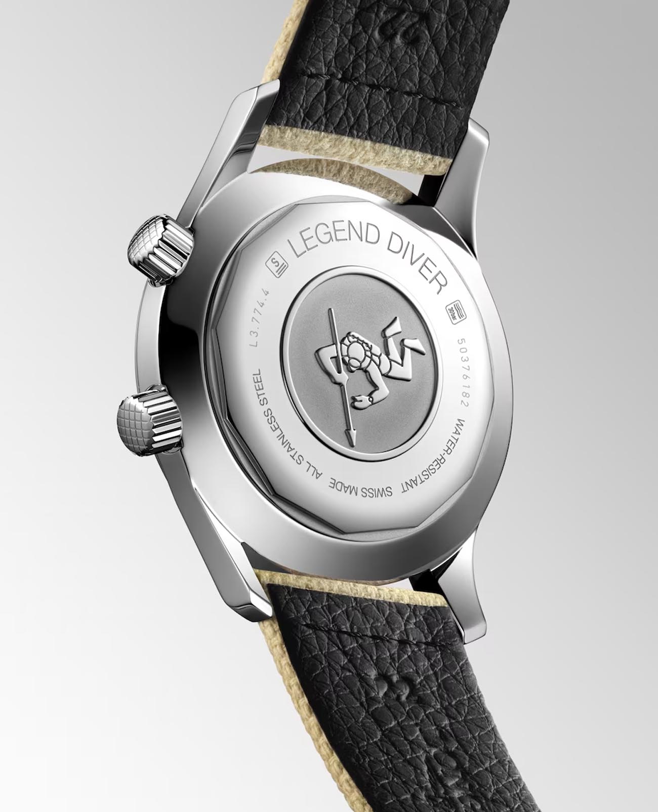 Мужские швейцарские механические часы с автоподзаводом Longines Legend Diver Watch L3.774.4.30.2. Сапфировое стеклоСапфировое стеклоПрочный и надёжный материал из кристалла сапфира синтетического происхождения, характеризующийся особой твёрдостью и устойчивостью к царапинам и повреждениям. устойчивое к появлению царапин, обладающее высокой прозрачностью. Корпус часов из нержавеющей стали. Стрелки и метки с люминесцентным покрытиемЛюминесцентное покрытиеПозволяет считывать показания времени в темноте. Производители наносят на стрелки, часовые индексы, безель или поверхность циферблата светонакопительный состав, дающий холодное свечение.. Нарисованные арабские цифры и метки. Окошко даты в положении 3 часов. Класс водозащиты: 300 метров, позволит плавать, нырять и заниматься другими водными видами спорта. Тканевый ремешок на стандартной застежке. Вращающийся стальной безельБезельВнешний ободок, закрепляющий стекло. В спортивных часах так называется поворотное кольцо с делениями на циферблате, выполняет роль таймера – замеряет отрезки времени на шкале. Неподвижный безель – элемент декора. Однонаправленно вращающийся безель на дайверских часах позволяет фиксировать моменты погружения и выныривания на поверхность..