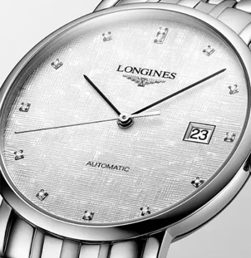 Изысканные мужские часы Longines Elegant Collection L4.810.4.77.6 — это воплощение спокойной роскоши и вечного стиля. Все элементы циферблата подчеркивают элегантность и классический вкус модели. Корпус часов изготовлен из нержавеющей стали 316L, диаметром 37 мм. Защиту циферблата с 13 бриллиантами обеспечивает прочное сапфировое стеклоСапфировое стеклоПрочный и надёжный материал из кристалла сапфира синтетического происхождения, характеризующийся особой твёрдостью и устойчивостью к царапинам и повреждениям., гарантирующее четкость показаний. Водостойкость до 30 метров позволит плавать, нырять и заниматься другими водными видами спорта. Изысканный браслет выполнен из стали 316L на застёжке-бабочкеЗастёжка "бабочка"Такой вид застёжки дополняется предохранителями, помогающими избежать случайного раскрытия браслета. Обладают изящным исполнением. , обеспечивающей комфортное ношение и надёжную фиксацию на запястье. Окошко даты в положении 3 часов. Коллекция The Elegant Collection сочетает в себе классическую элегантность и современный подход к дизайну, делая эти часы универсальным аксессуаром — как для торжественных случаев, так и для повседневной жизни.