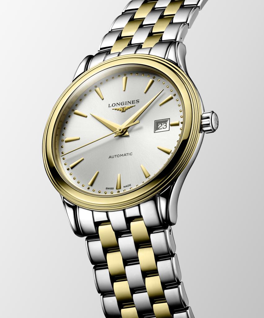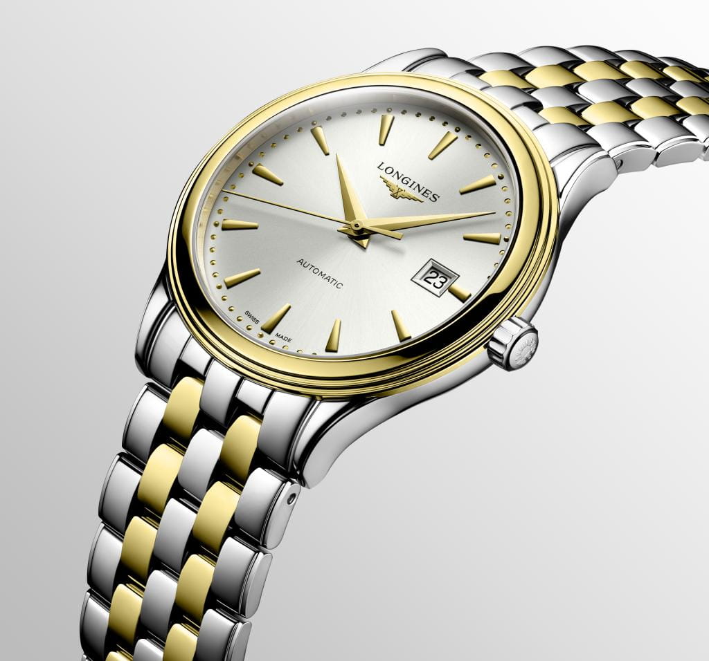 Мужские швейцарские механические часы с автоподзаводом Longines Flagship L4.984.3.79.7. Сапфировое стеклоСапфировое стеклоПрочный и надёжный материал из кристалла сапфира синтетического происхождения, характеризующийся особой твёрдостью и устойчивостью к царапинам и повреждениям. устойчивое к появлению царапин, обладающее высокой прозрачностью. Корпус изготовлен из нержавещей стали. БезельБезельВнешний ободок, закрепляющий стекло. В спортивных часах так называется поворотное кольцо с делениями на циферблате, выполняет роль таймера – замеряет отрезки времени на шкале. Неподвижный безель – элемент декора. Однонаправленно вращающийся безель на дайверских часах позволяет фиксировать моменты погружения и выныривания на поверхность. с PVD-покрытиемPVDУльтратонкое покрытие наносится в технике вакуумного напыления, сочетает в себе нитрид титана особой прочности со слоем золота или оксида хрома. Несёт в себе декоративную или защитную функцию.. Окошко даты находится в положении 3 часа. Класс водозащиты: 30 метров, позволит защитить корпус от случайных брызг или капель дождя. Браслет из нержавеющей стали с частичным PVD-покрытиемPVDУльтратонкое покрытие наносится в технике вакуумного напыления, сочетает в себе нитрид титана особой прочности со слоем золота или оксида хрома. Несёт в себе декоративную или защитную функцию. на застёжке-бабочке с кнопкамиЗастёжка "бабочка"Такой вид застёжки дополняется предохранителями, помогающими избежать случайного раскрытия браслета. Обладают изящным исполнением. .