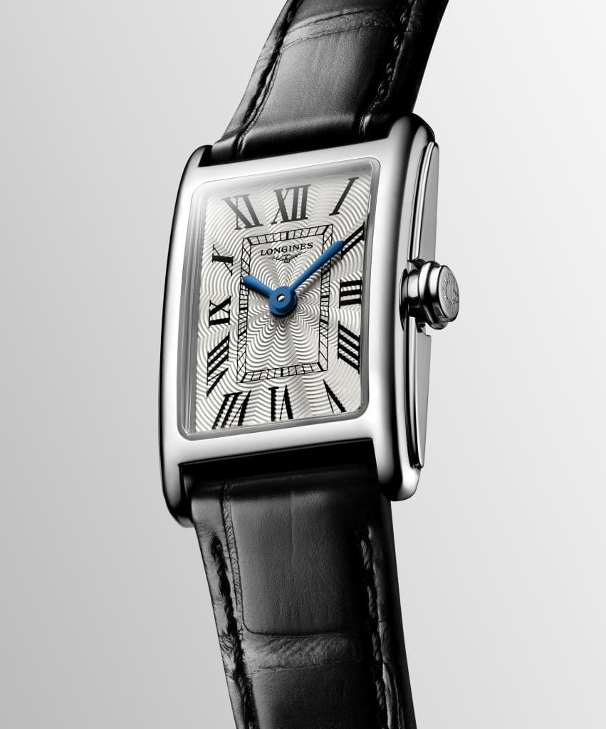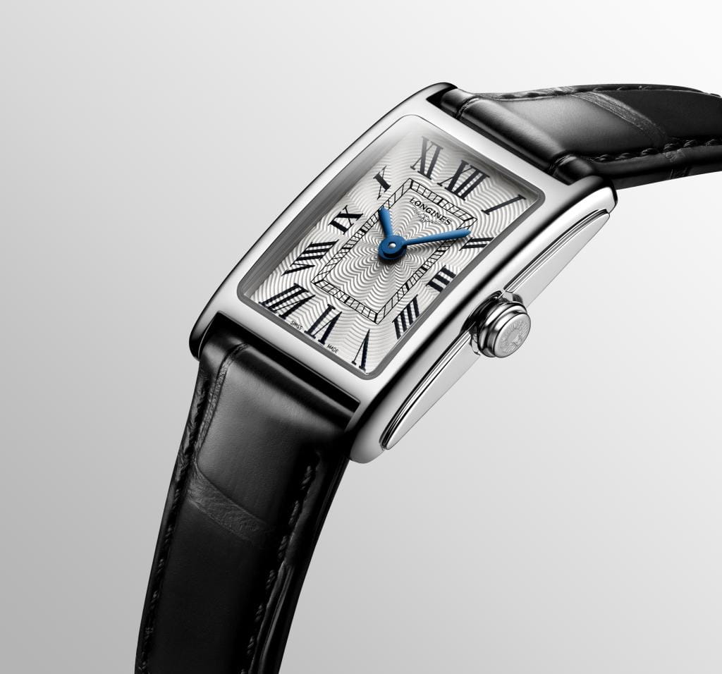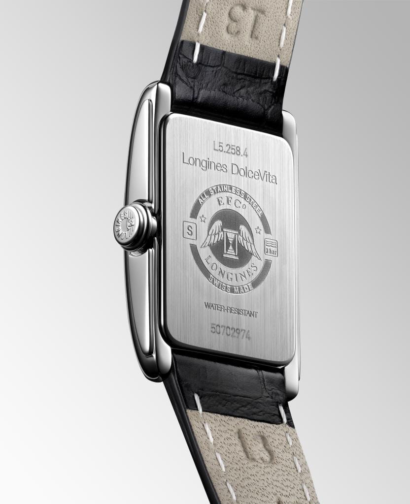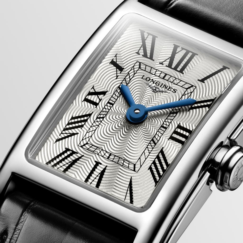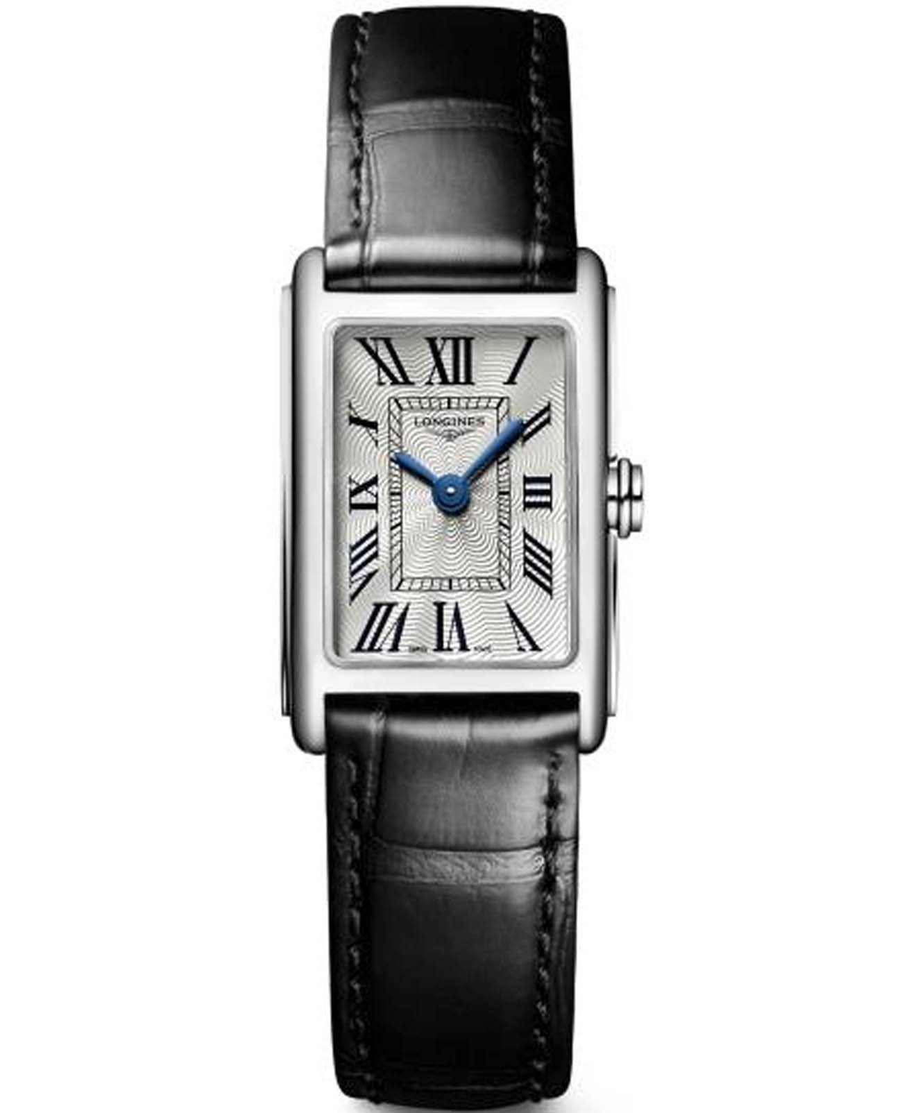 Женские швейцарские часы Longines DolceVita L5.258.4.71.0, кварцевый механизм с высокой точностью. Сапфировое стеклоСапфировое стеклоПрочный и надёжный материал из кристалла сапфира синтетического происхождения, характеризующийся особой твёрдостью и устойчивостью к царапинам и повреждениям. устойчивое к появлению царапин, обладающее высокой прозрачностью. Корпус часов изготовлен из нержавеющей стали. Циферблат с 13 бриллиантами группы Top Wesselton VS-SI общим весом 0.037 карата. Метки в виде римских цифр. Класс водозащиты: 30 метров, позволит защитить корпус от случайных брызг или капель дождя. Стальной браслет на застёжке «бабочка» с кнопкамиЗастёжка "бабочка"Такой вид застёжки дополняется предохранителями, помогающими избежать случайного раскрытия браслета. Обладают изящным исполнением. .