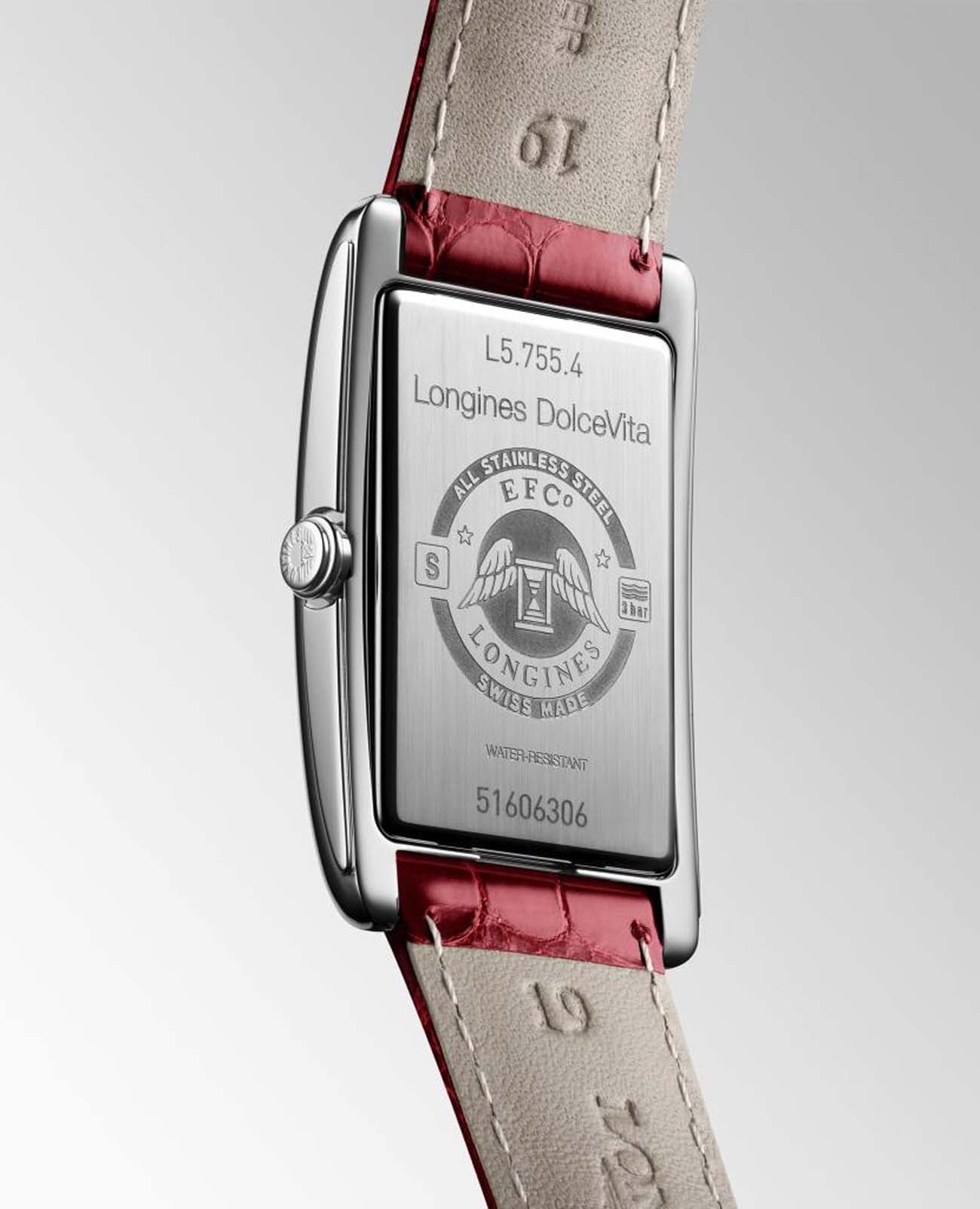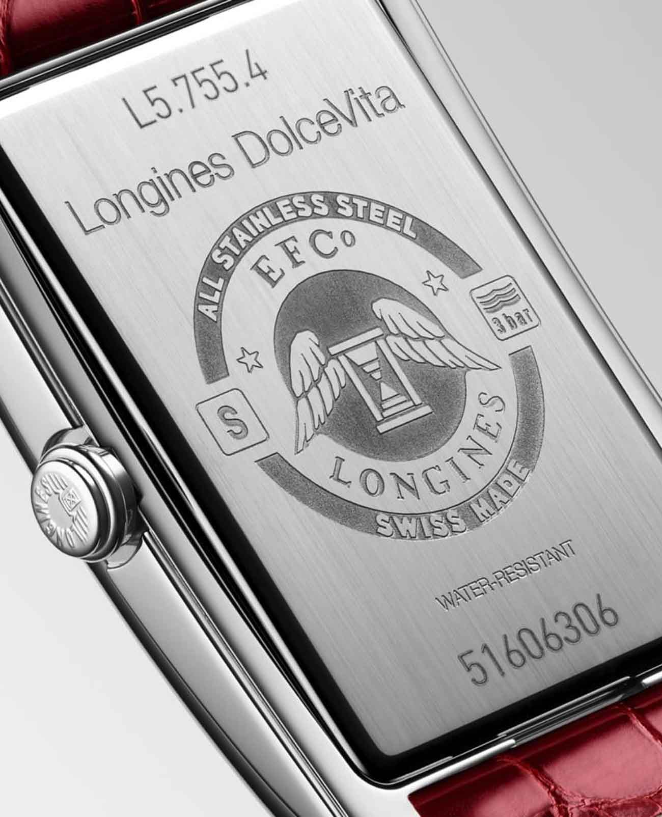 Женские швейцарские часы Longines DolceVita L5.755.4.71.5, кварцевый механизм с высокой точностью. Сапфировое стеклоСапфировое стеклоПрочный и надёжный материал из кристалла сапфира синтетического происхождения, характеризующийся особой твёрдостью и устойчивостью к царапинам и повреждениям. устойчивое к появлению царапин, обладающее высокой прозрачностью. Корпус часов изготовлен из нержавеющей стали. Метки в виде римских цифр. Малая секундная стрелка в положении 6 часов. Класс водозащиты: 30 метров, позволит защитить корпус от случайных брызг или капель дождя. Кожаный ремешок на стандартной застежке.