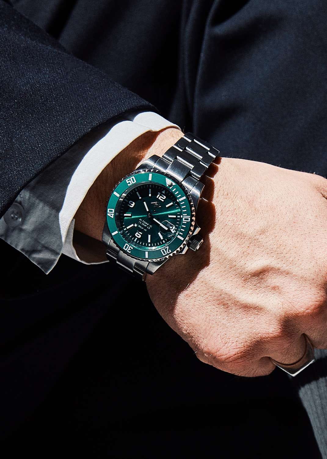 Мужские наручные часы Луч Феникс 3.0 929530645 — это стильное сочетание элегантности и современного дизайна. Элегантный корпус диаметром 41 мм выполнен из нержавеющей стали, который придает модели особый изысканный вид. Циферблат защищен сапфировым стекломСапфировое стеклоПрочный и надёжный материал из кристалла сапфира синтетического происхождения, характеризующийся особой твёрдостью и устойчивостью к царапинам и повреждениям., обеспечивающим устойчивость к царапинам. Метки в виде штрихов и арабских цифр, окошко даты находится в положении 3 часа. Часы оснащены механическим механизмом с автоподзаводом, а стальной браслет на застёжке-бабочке с кнопкамиЗастёжка "бабочка"Такой вид застёжки дополняется предохранителями, помогающими избежать случайного раскрытия браслета. Обладают изящным исполнением. гарантирует комфортную посадку на запястье. БезельБезельВнешний ободок, закрепляющий стекло. В спортивных часах так называется поворотное кольцо с делениями на циферблате, выполняет роль таймера – замеряет отрезки времени на шкале. Неподвижный безель – элемент декора. Однонаправленно вращающийся безель на дайверских часах позволяет фиксировать моменты погружения и выныривания на поверхность. с PVD-покрытиемPVDУльтратонкое покрытие наносится в технике вакуумного напыления, сочетает в себе нитрид титана особой прочности со слоем золота или оксида хрома. Несёт в себе декоративную или защитную функцию. зеленого цвета. Стрелки с люминесцентным покрытиемЛюминесцентное покрытиеПозволяет считывать показания времени в темноте. Производители наносят на стрелки, часовые индексы, безель или поверхность циферблата светонакопительный состав, дающий холодное свечение. позволяют легко считывать время даже в условиях недостаточного освещения. Водозащита 30 метров позволит защитить корпус от случайных брызг или капель дождя. Луч — отличный выбор для тех, кто ценит утонченность и качество.