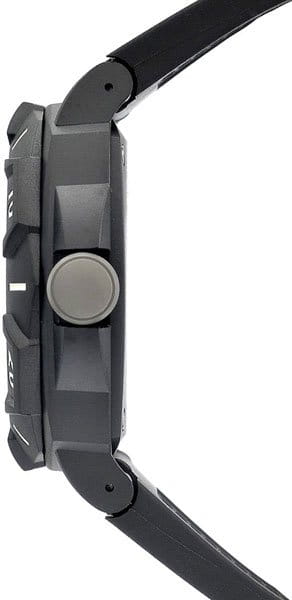 Эффектные швейцарские наручные часы. 12-ти и 24-х часовой формат времени. Безель вращается в одном направлении. Задняя крышка из усиленного карбона закреплена стальными винтами. Заводная головка с защитой выполнена из стали. Материал корпуса: пластик, усиленный прессованный карбон; Материал браслета: полиуретановый; Стекло: Минеральное; Водозащита: 100 м. (WR 100).
