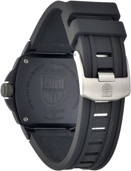 Эффектные швейцарские наручные часы. 12-ти и 24-х часовой формат времени. Безель вращается в одном направлении. Задняя крышка из усиленного карбона закреплена стальными винтами. Заводная головка с защитой выполнена из стали. Материал корпуса: пластик, усиленный прессованный карбон; Материал браслета: полиуретановый; Стекло: Минеральное; Водозащита: 100 м. (WR 100).