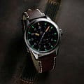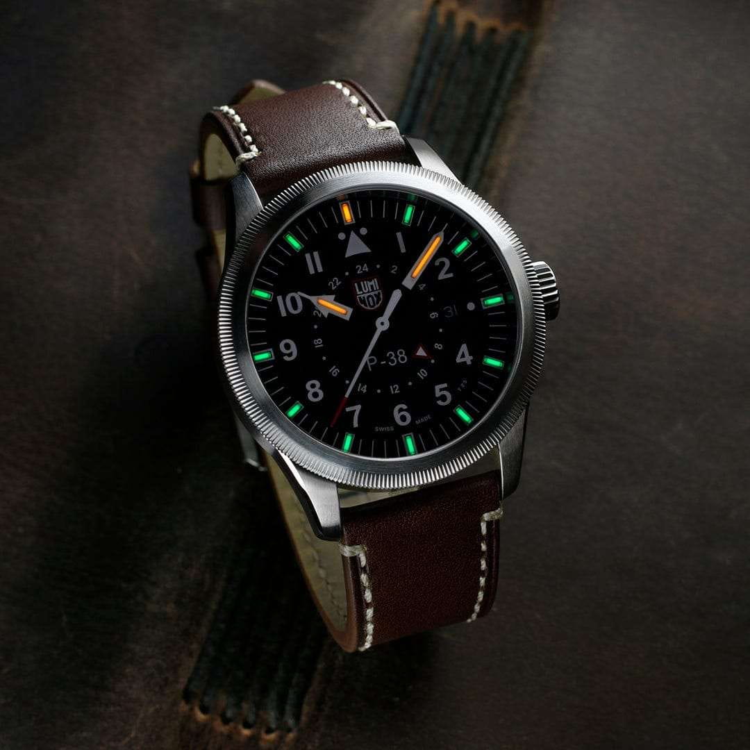 Эти часы Luminox P-38 LIGHTNING XA.9521 представляют собой сочетание классического дизайна и современных технологий. Они оснащены 42-миллиметровым черным циферблатом, защищенным сапфировым стекломСапфировое стеклоПрочный и надёжный материал из кристалла сапфира синтетического происхождения, характеризующийся особой твёрдостью и устойчивостью к царапинам и повреждениям. с антибликовым покрытиемАнтибликовое покрытиеСлой оксида металла в 0,13-0,3 микрон, благодаря которому стекло часов не бликует и не отражает свет. Антибликовое покрытие уменьшает отражение света в 10 раз, обеспечивая отличную читаемость показателей циферблата., и стильным коричневым кожаным ремешком с фирменной классической застежкой застежкой Luminox. Часы обладают функцией GMTGMTОтображение времени второго часового пояса.Такая функция особенно актуальна для путешественников и бизнесменов,которые общаются с людьми из разных стран,теперь вы всегда будете знать,какой час у вашего партнёра или близкого человека., что позволяет отслеживать время в двух часовых поясах одновременно, делая их идеальными спутниками для путешественников по всему миру. Дизайн вдохновлен традиционными навигационными часами B-Uhr 1940-х годов, с характерным треугольником и двумя точками под отметкой 12 часов, что обеспечивает быструю ориентацию и легкость считывания времени. Механизм на базе швейцарского кварца RONDA 515.24H обеспечивает работу часов до 50 месяцев без замены батареи, а постоянное свечение циферблата сохраняется до 25 лет благодаря LLTLLTLLT — это автономный механизм подсветки, основанный на использовании микроскопических газонаполненных элементов. Специальные герметичные капсулы из боросиликатного стекла, интегрированные в циферблат, генерируют свечение без необходимости подключения к внешним источникам энергии. Для их работы не требуется ни дополнительный свет, ни механическое воздействие (например, нажатие кнопки). Свечение возникает благодаря химическому процессу: реакция между тритием, заключенным в капсулах, и люминофорным покрытием создает стабильное автономное освещение. Технология обеспечивает энергетическую независимость и долговечность подсветки.-подсветке. Корпус выполнен из нержавеющей стали 316L и выдерживает погружение на глубину до 100 метров. Завинчивающаяся заводная головка и прозрачная задняя крышка из нержавеющей стали добавляют прочности и эстетической привлекательности.