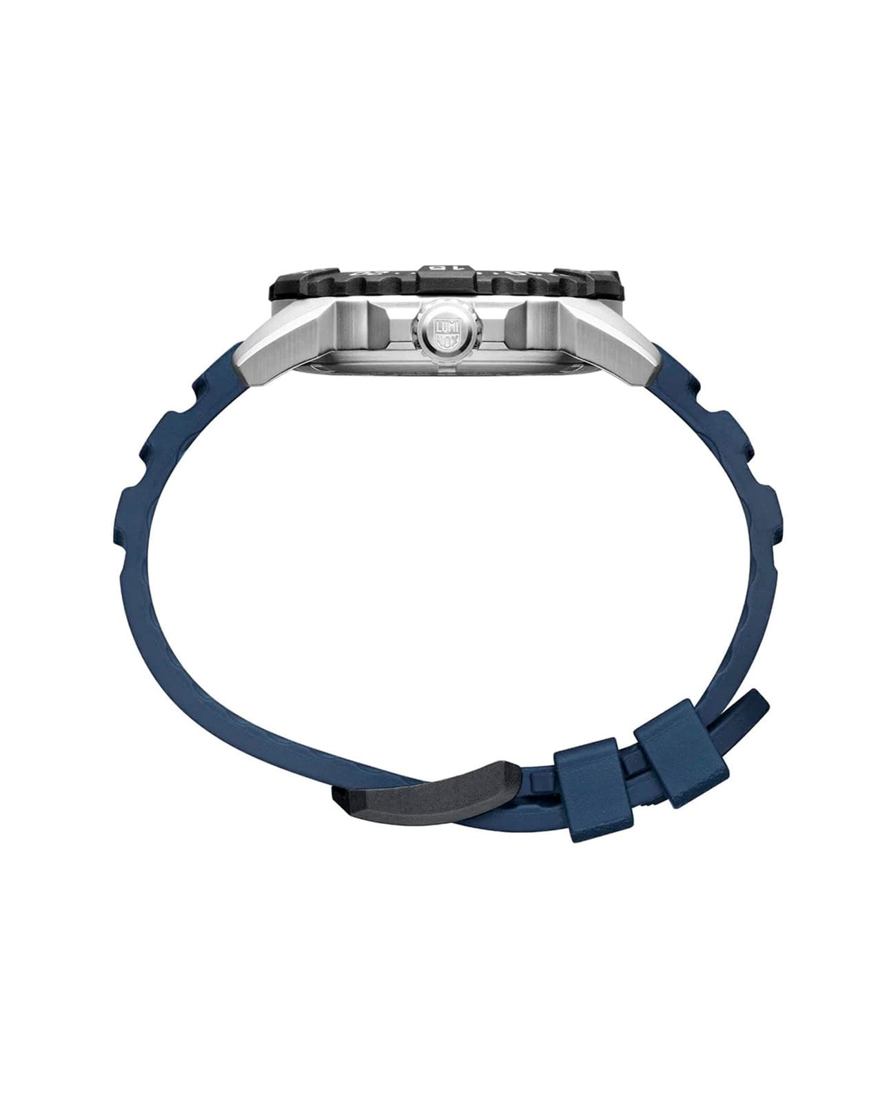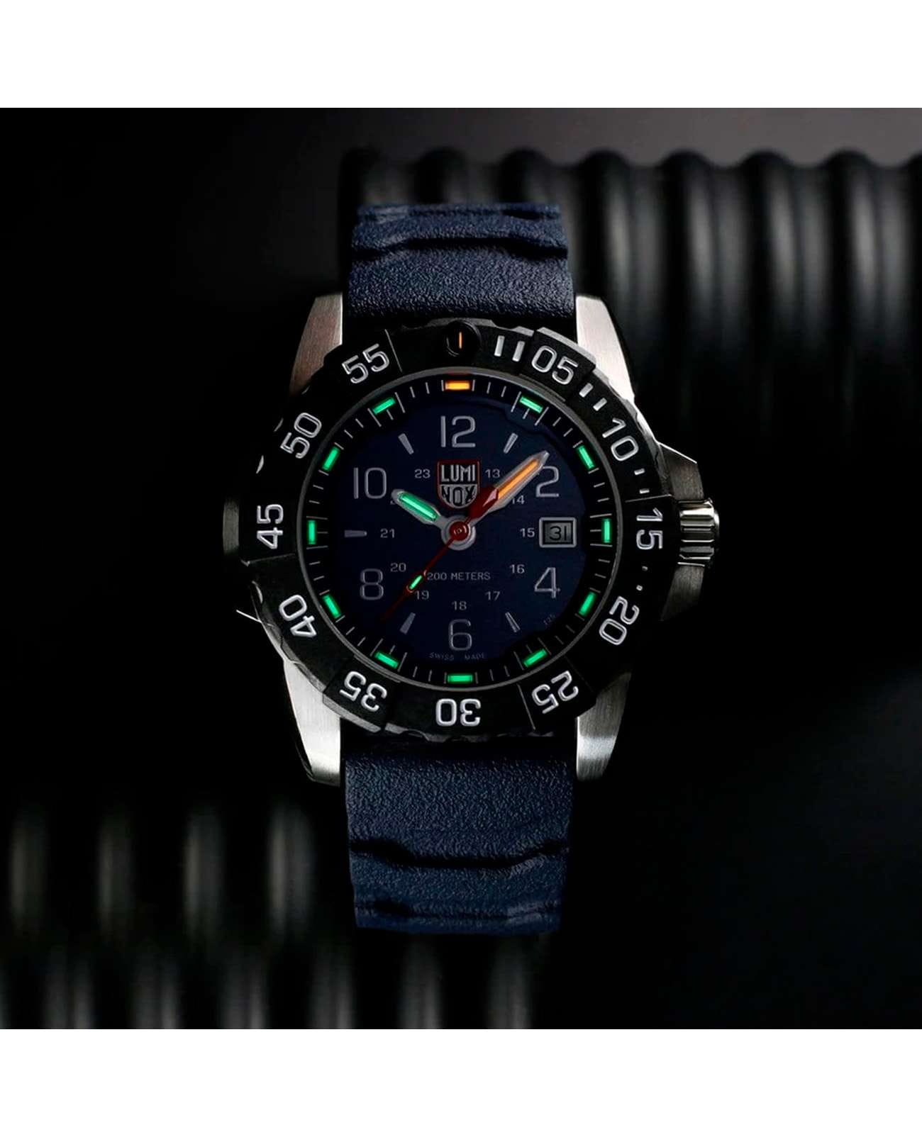 Мужские наручные часы Luminox XS.3253.CB из коллекции Navy SEAL сочетают в себе спортивный дизайн и надежность швейцарского качества . Модель обладает круглым корпусом диаметром 45 мм, изготовленным из стали и карбонаКарбонОт «carbon», «carbone» - углерод, углепластик - полимерный композиционный материал из переплетённых под определенным углом между собой нитей углеродного волокна, применяется для изготовления лёгких, но прочных деталей. В часах часто используют для украшения циферблатов и ремешков. Так же карбон используется в изготовлении корпусов. Такие корпуса обладают антикоррозионным свойством, не поддаются электромагнитному излучению, обладают повышенной прочностью и противоударностью. (CARBONOX™), что обеспечивает высокую устойчивость к внешним воздействиям при сохранении легкости . Циферблат синего цвета украшен контрастными метками и стрелками с люминесцентным покрытиемЛюминесцентное покрытиеПозволяет считывать показания времени в темноте. Производители наносят на стрелки, часовые индексы, безель или поверхность циферблата светонакопительный состав, дающий холодное свечение., гарантирующим постоянную видимость времени даже в условиях низкой освещенности благодаря системе LLTLLTLLT — это автономный механизм подсветки, основанный на использовании микроскопических газонаполненных элементов. Специальные герметичные капсулы из боросиликатного стекла, интегрированные в циферблат, генерируют свечение без необходимости подключения к внешним источникам энергии. Для их работы не требуется ни дополнительный свет, ни механическое воздействие (например, нажатие кнопки). Свечение возникает благодаря химическому процессу: реакция между тритием, заключенным в капсулах, и люминофорным покрытием создает стабильное автономное освещение. Технология обеспечивает энергетическую независимость и долговечность подсветки. (микрогазовые огни) . Часы оснащены кварцевым механизмом швейцарского производства Ronda 515, обеспечивающим точность хода ±15 секунд в месяц . Защиту циферблата обеспечивает прочное сапфировое стеклоСапфировое стеклоПрочный и надёжный материал из кристалла сапфира синтетического происхождения, характеризующийся особой твёрдостью и устойчивостью к царапинам и повреждениям. с антибликовым покрытиемАнтибликовое покрытиеСлой оксида металла в 0,13-0,3 микрон, благодаря которому стекло часов не бликует и не отражает свет. Антибликовое покрытие уменьшает отражение света в 10 раз, обеспечивая отличную читаемость показателей циферблата., устойчивое к царапинам и механическим повреждениям . Водонепроницаемость модели достигает 20 атмосфер (200 метров), что делает их подходящими для плавания и активного отдыха на воде, включая дайвинг. Модель также оснащена безелемБезельВнешний ободок, закрепляющий стекло. В спортивных часах так называется поворотное кольцо с делениями на циферблате, выполняет роль таймера – замеряет отрезки времени на шкале. Неподвижный безель – элемент декора. Однонаправленно вращающийся безель на дайверских часах позволяет фиксировать моменты погружения и выныривания на поверхность. с односторонним вращением, что добавляет функциональности при использовании в водных условиях . Ремешок выполнен из полиуретана, что обеспечивает комфортное ношение в течение дня и удобство в уходе . Дополнительно ча