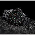 Мужские наручные часы Luminox XS.3510 из коллекции Navy SEAL сочетают в себе спортивный дизайн и надежность швейцарского качества . Модель обладает круглым корпусом диаметром 45 мм, изготовленным из карбонаКарбонОт «carbon», «carbone» - углерод, углепластик - полимерный композиционный материал из переплетённых под определенным углом между собой нитей углеродного волокна, применяется для изготовления лёгких, но прочных деталей. В часах часто используют для украшения циферблатов и ремешков. Так же карбон используется в изготовлении корпусов. Такие корпуса обладают антикоррозионным свойством, не поддаются электромагнитному излучению, обладают повышенной прочностью и противоударностью. (CARBONOX™), что обеспечивает высокую устойчивость к внешним воздействиям при сохранении легкости . Циферблат черного цвета украшен контрастными метками и стрелками с люминесцентным покрытиемЛюминесцентное покрытиеПозволяет считывать показания времени в темноте. Производители наносят на стрелки, часовые индексы, безель или поверхность циферблата светонакопительный состав, дающий холодное свечение., гарантирующим постоянную видимость времени даже в условиях низкой освещенности благодаря системе LLTLLTLLT — это автономный механизм подсветки, основанный на использовании микроскопических газонаполненных элементов. Специальные герметичные капсулы из боросиликатного стекла, интегрированные в циферблат, генерируют свечение без необходимости подключения к внешним источникам энергии. Для их работы не требуется ни дополнительный свет, ни механическое воздействие (например, нажатие кнопки). Свечение возникает благодаря химическому процессу: реакция между тритием, заключенным в капсулах, и люминофорным покрытием создает стабильное автономное освещение. Технология обеспечивает энергетическую независимость и долговечность подсветки. (микрогазовые огни) . Часы оснащены кварцевым механизмом швейцарского производства Ronda 715, обеспечивающим точность хода ±15 секунд в месяц . Защиту циферблата обеспечивает прочное минеральное стеклоМинеральное стеклоМинеральное стекло представляет собой искусственно выращенный минерал кварца. Такое стекло отличается особой устойчивостью к повреждениям и царапинам. Уступает по некоторым качествам сапфировому стеклу. с антибликовым покрытиемАнтибликовое покрытиеСлой оксида металла в 0,13-0,3 микрон, благодаря которому стекло часов не бликует и не отражает свет. Антибликовое покрытие уменьшает отражение света в 10 раз, обеспечивая отличную читаемость показателей циферблата., устойчивое к царапинам и механическим повреждениям . Водонепроницаемость модели достигает 20 атмосфер (200 метров), что делает их подходящими для плавания и активного отдыха на воде, включая дайвинг . Модель также оснащена безелемБезельВнешний ободок, закрепляющий стекло. В спортивных часах так называется поворотное кольцо с делениями на циферблате, выполняет роль таймера – замеряет отрезки времени на шкале. Неподвижный безель – элемент декора. Однонаправленно вращающийся безель на дайверских часах позволяет фиксировать моменты погружения и выныривания на поверхность. с односторонним вращением, что добавляет функциональности при использовании в водных условиях . Ремешок выполнен из черного полиуретана, что обеспечивает комфортное ношение в т