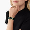 Женские американские наручные часы с минеральным стекломМинеральное стеклоМинеральное стекло представляет собой искусственно выращенный минерал кварца. Такое стекло отличается особой устойчивостью к повреждениям и царапинам. Уступает по некоторым качествам сапфировому стеклу. Michael Kors Emery MK4697, кварцевый механизм с высокой точностью. Минеральное стеклоМинеральное стеклоМинеральное стекло представляет собой искусственно выращенный минерал кварца. Такое стекло отличается особой устойчивостью к повреждениям и царапинам. Уступает по некоторым качествам сапфировому стеклу. устойчивое к появлению царапин, обладающее высокой прозрачностью. Корпус изготовлен из нержавеющей стали с IP-покрытиемIP-покрытиеМетод ионного напыления. Демонстрирует повышенную устойчивость к истиранию, окислению и химическим веществам. Под воздействием высокого давления и температуры около 1500°C молекулы металла надёжно соединяются с частицами корпуса часов.. БезельБезельВнешний ободок, закрепляющий стекло. В спортивных часах так называется поворотное кольцо с делениями на циферблате, выполняет роль таймера – замеряет отрезки времени на шкале. Неподвижный безель – элемент декора. Однонаправленно вращающийся безель на дайверских часах позволяет фиксировать моменты погружения и выныривания на поверхность. с IP-покрытиемIP-покрытиеМетод ионного напыления. Демонстрирует повышенную устойчивость к истиранию, окислению и химическим веществам. Под воздействием высокого давления и температуры около 1500°C молекулы металла надёжно соединяются с частицами корпуса часов. из нержавеющей стали украшен кристаллами. Класс водозащиты: 50 метров, позволит защитить корпус от случайных брызг или капель дождя. Кожаный ремешок на стандартной застёжке.
