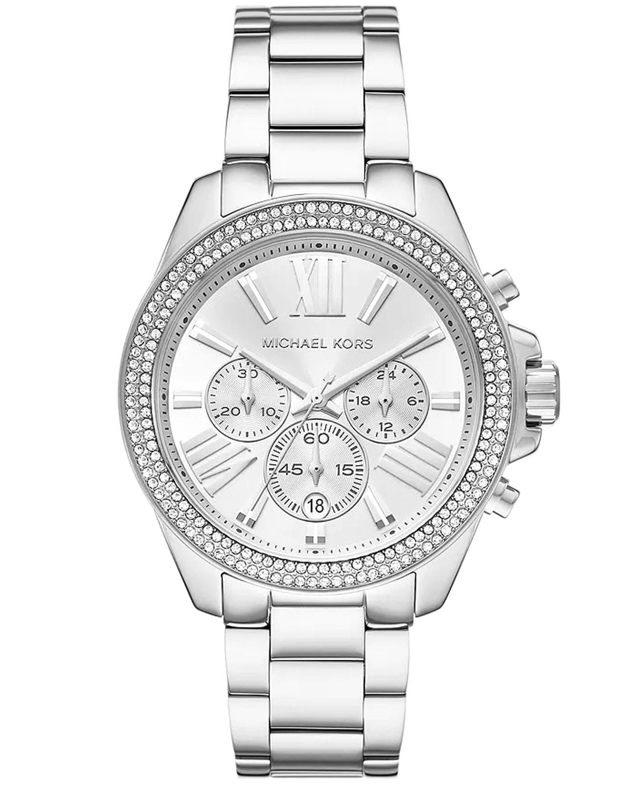 Откройте для себя сочетание современного стиля и функциональности в часах Michael Kors WREN MK7429 — потрясающие серебряные часы-хронографХронографФункция позволяет измерять отрезки времени с особой точностью: часы, минуты, секунды. Верным признаком хронографа является наличие на циферблате 3 дополнительных окошек-счётчиков. с секундомеромСекундомерСекундоме́р — прибор, способный измерять интервалы времени с точностью до долей секунды., созданных для женщин, которые ценят изысканность и утонченность. Эти часы легко дополнят любой образ и станут идеальным аксессуаром как для повседневного, так и для официального мероприятия. Кварцевый механизм с высокой точностью. Корпус часов изготовлен из нержавеющей стали, диаметром 42 мм. Циферблат с метками в виде римских цифр защищен минеральным стекломМинеральное стеклоМинеральное стекло представляет собой искусственно выращенный минерал кварца. Такое стекло отличается особой устойчивостью к повреждениям и царапинам. Уступает по некоторым качествам сапфировому стеклу., что обеспечивает надежную защиту от царапин и повреждений. Класс водозащиты: 100 метров позволит плавать, нырять и заниматься другими водными видами спорта. Метки с люминесцентным покрытиемЛюминесцентное покрытиеПозволяет считывать показания времени в темноте. Производители наносят на стрелки, часовые индексы, безель или поверхность циферблата светонакопительный состав, дающий холодное свечение.. Удобный стальной браслет на раскладной застёжкеРаскладная застёжкаТакой тип застёжки используется только на браслетах из металла. Она никогда не раскрывается полностью, происходит разделение на 2 и более частей. Раскладывающая застёжка снизит вероятность потери часов к минимуму. обеспечивает надежную фиксацию на запястье и легкость в надевании и снятии. БезельБезельВнешний ободок, закрепляющий стекло. В спортивных часах так называется поворотное кольцо с делениями на циферблате, выполняет роль таймера – замеряет отрезки времени на шкале. Неподвижный безель – элемент декора. Однонаправленно вращающийся безель на дайверских часах позволяет фиксировать моменты погружения и выныривания на поверхность. инкрустирован кристаллами. 24-часовой формат времени для удобства планирования. Рифленая заводная головка.