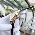 Скромность, граничащая с вызовом современности. Необычный механизм имеет вынесенную секундную стрелку. Сложное гильоширование циферблата притягивает внимание. 24 бриллианта, окантовывающих циферблат секундной стрелки, подчеркнёт изысканность и утончённый вкус, а 12 бриллиантов вместо индексов подчеркнёт внимание к мелочам. Данная модель подходит не только для повседневной носки, но и дополнит композицию вечернего наряда или простого коктейльного платья. Женские швейцарские механические часы с автоподзаводом Mido Baroncelli II Lady M007.228.36.036.00, механический механизм (автоматический калибр) с высокой точностью. Сапфировое стеклоСапфировое стеклоПрочный и надёжный материал из кристалла сапфира синтетического происхождения, характеризующийся особой твёрдостью и устойчивостью к царапинам и повреждениям. устойчивое к появлению царапин, обладающее высокой прозрачностью. Класс водозащиты: 50 метров, позволит защитить корпус от случайных брызг или капель дождя. Корпус часов изготовлен из стали с PVD-покрытиемPVDУльтратонкое покрытие наносится в технике вакуумного напыления, сочетает в себе нитрид титана особой прочности со слоем золота или оксида хрома. Несёт в себе декоративную или защитную функцию.. Кожаный ремешок с раскладной застёжкойРаскладная застёжкаТакой тип застёжки используется только на браслетах из металла. Она никогда не раскрывается полностью, происходит разделение на 2 и более частей. Раскладывающая застёжка снизит вероятность потери часов к минимуму..