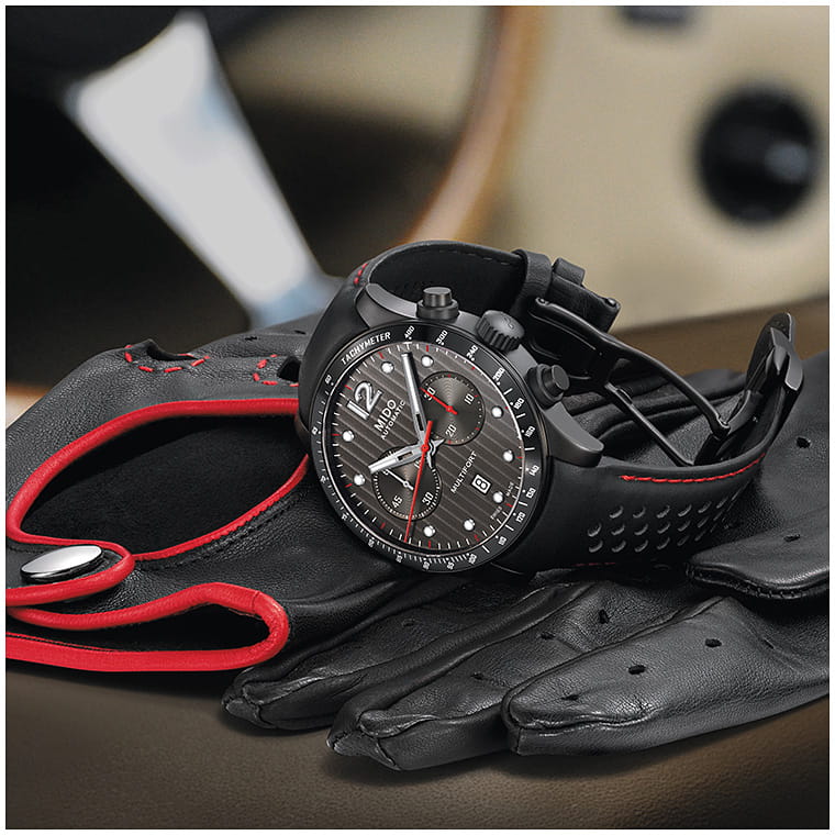 Модель оснащена автоматическим механизмом Mido Calibre 60 с запасом хода до 60 часов, который обеспечивает точность и надёжность. Функции хронографа включают 60-секундный и 30-минутный счётчики, а также тахиметрическую шкалу для измерения скорости. Окно даты на отметке 6 часов добавляет практичности.