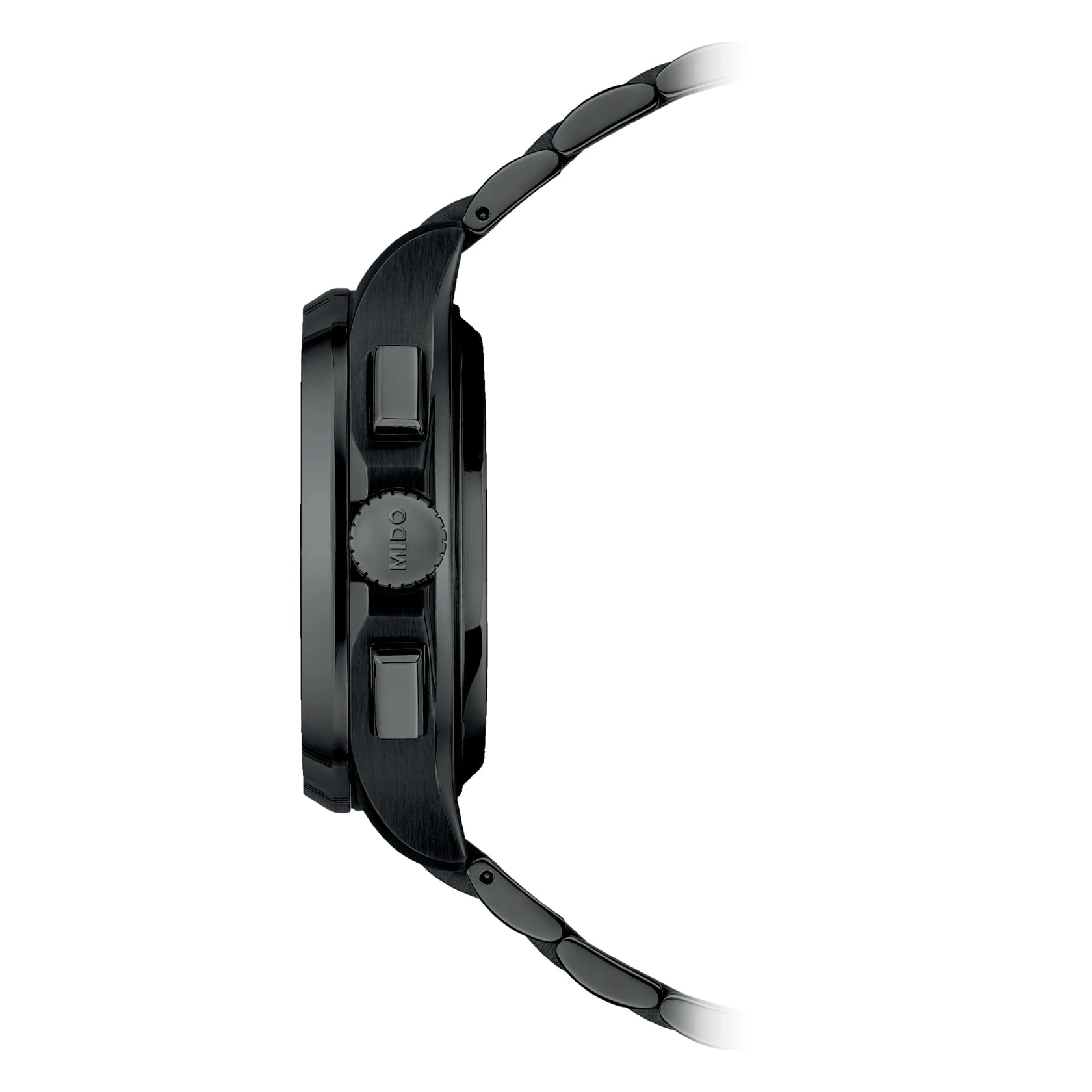 Мужские механические швейцарские часы Mido Multifort TV Chronograph M049.527.33.081.00, механический механизм с высокой точностью. Сапфировое стеклоСапфировое стеклоПрочный и надёжный материал из кристалла сапфира синтетического происхождения, характеризующийся особой твёрдостью и устойчивостью к царапинам и повреждениям. устойчивое к появлению царапин, обладающее высокой прозрачностью. Корпус часов изготовлен из нержавеющей стали с PVD-покрытиемPVDУльтратонкое покрытие наносится в технике вакуумного напыления, сочетает в себе нитрид титана особой прочности со слоем золота или оксида хрома. Несёт в себе декоративную или защитную функцию..  В механизм внедрена пружина баланса Nivachron™Nivachron™Специально разработанный инновационный сплав Nivachron™ повышает устойчивость часов к воздействию магнитных полей.. Часы с люминесцентным покрытиемЛюминесцентное покрытиеПозволяет считывать показания времени в темноте. Производители наносят на стрелки, часовые индексы, безель или поверхность циферблата светонакопительный состав, дающий холодное свечение.. Окошко даты в положении между 4 и 6 часами. Класс водозащиты: 100 метров, позволит плавать, нырять и заниматься другими водными видами спорта. Стальной браслет на раскладной застёжкеРаскладная застёжкаТакой тип застёжки используется только на браслетах из металла. Она никогда не раскрывается полностью, происходит разделение на 2 и более частей. Раскладывающая застёжка снизит вероятность потери часов к минимуму..Часы с функциями хронографаХронографФункция позволяет измерять отрезки времени с особой точностью: часы, минуты, секунды. Верным признаком хронографа является наличие на циферблате 3 дополнительных окошек-счётчиков. и тахиметраТахиметрРазмеченная шкала, располагается на ободке или безеле часов. Тахиметр позволяет рассчитать скорость на определённом участке пути, расстояние измеряется в километрах или милях.. Поставляются с дополнительным ремешком, что обеспечивает еще большую универсальность и комфорт.