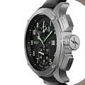 Мужские кварцевые часы — это стильный и функциональный аксессуар с хронографом. Корпус диаметром 44 мм выполнен из нержавеющей стали 316L с матовой полировкой, включая безельБезельВнешний ободок, закрепляющий стекло. В спортивных часах так называется поворотное кольцо с делениями на циферблате, выполняет роль таймера – замеряет отрезки времени на шкале. Неподвижный безель – элемент декора. Однонаправленно вращающийся безель на дайверских часах позволяет фиксировать моменты погружения и выныривания на поверхность., кнопки и заводную головку. Циферблат чёрного цвета оформлен индексами и стрелками. Стрелки и метки с люминесцентным покрытиемЛюминесцентное покрытиеПозволяет считывать показания времени в темноте. Производители наносят на стрелки, часовые индексы, безель или поверхность циферблата светонакопительный состав, дающий холодное свечение. Super-LumiNova, обеспечивающим хорошую читаемость в темноте. Циферблат защищён сапфировым стекломСапфировое стеклоПрочный и надёжный материал из кристалла сапфира синтетического происхождения, характеризующийся особой твёрдостью и устойчивостью к царапинам и повреждениям.. Механизм — швейцарский кварцевый калибр Ronda 3520.D с функциями хронографаХронографФункция позволяет измерять отрезки времени с особой точностью: часы, минуты, секунды. Верным признаком хронографа является наличие на циферблате 3 дополнительных окошек-счётчиков. и секундомераСекундомерСекундоме́р — прибор, способный измерять интервалы времени с точностью до долей секунды.. Часы оснащены кожаным ремешком чёрного цвета с классической пряжкой. Водонепроницаемость 100 м позволяет использовать часы для плавания и повседневного ношения. Идеальный выбор для тех, кто ценит точность, качество и выразительный дизайн.