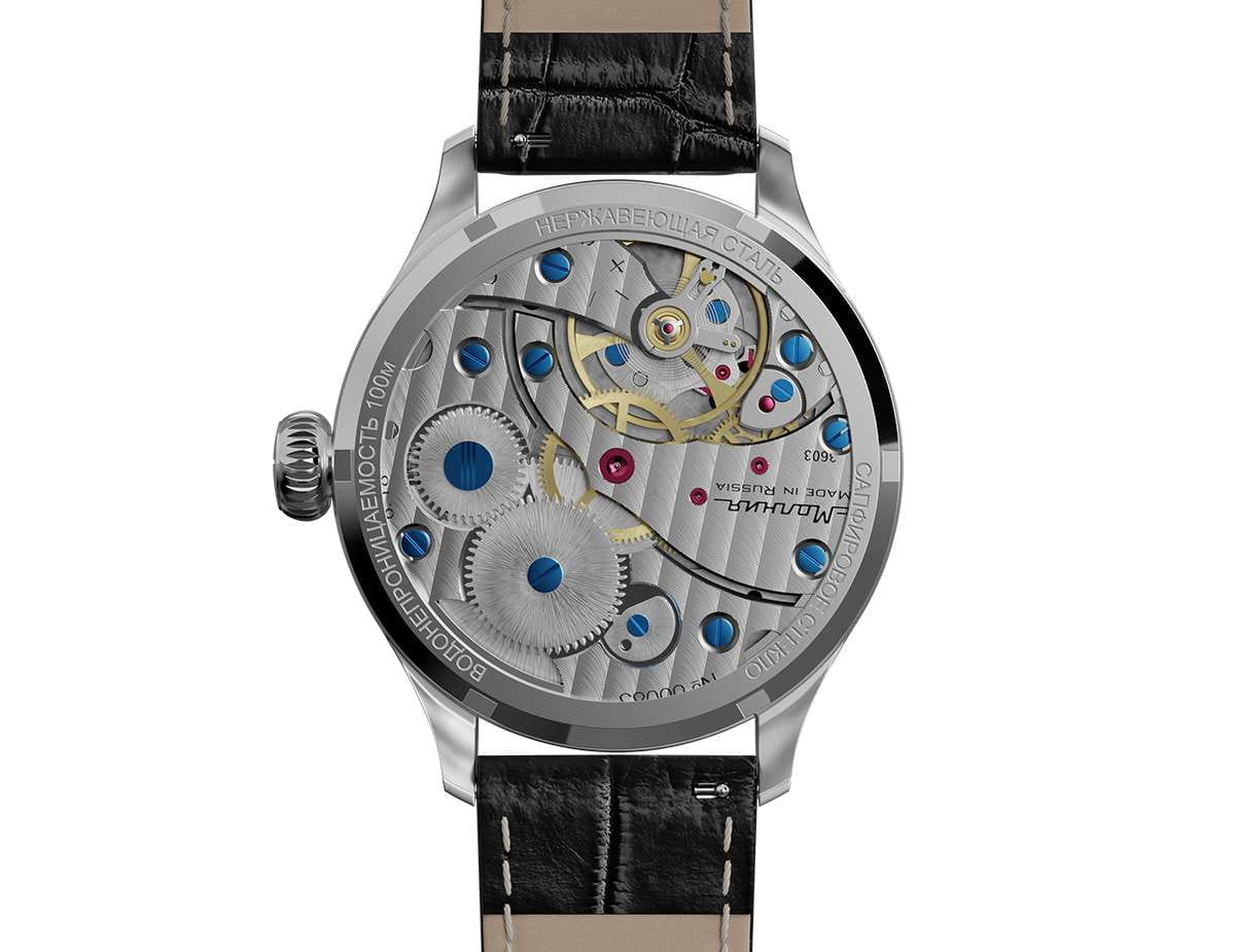 Мужские механические часы с ручным подзаводом — это аксессуар от легендарного бренда «МОЛНИЯ», созданный на Челябинском часовом заводе. Корпус диаметром 41 мм и толщиной 12 мм выполнен из нержавеющей стали 316L с зеркальной полировкой. БезельБезельВнешний ободок, закрепляющий стекло. В спортивных часах так называется поворотное кольцо с делениями на циферблате, выполняет роль таймера – замеряет отрезки времени на шкале. Неподвижный безель – элемент декора. Однонаправленно вращающийся безель на дайверских часах позволяет фиксировать моменты погружения и выныривания на поверхность. также выполнен из стали с зеркальной отделкой. Циферблат чёрного цвета оформлен римскими цифрами и стальными индексами. Малая секундная стрелка вынесена на позицию 9 часов. Циферблат защищён сапфировым стекломСапфировое стеклоПрочный и надёжный материал из кристалла сапфира синтетического происхождения, характеризующийся особой твёрдостью и устойчивостью к царапинам и повреждениям. толщиной 2,5 мм. Механизм — мануфактурный калибр 3603, собранный вручную, с запасом хода до 40 часов. Прозрачная задняя крышка позволяет наблюдать за работой механизма. Часы оснащены чёрным кожаным ремешком шириной 20 мм с раскладной застёжкойРаскладная застёжкаТакой тип застёжки используется только на браслетах из металла. Она никогда не раскрывается полностью, происходит разделение на 2 и более частей. Раскладывающая застёжка снизит вероятность потери часов к минимуму. и системой быстрой замены. Водонепроницаемость 100 м позволяет использовать часы для плавания и повседневного ношения. Идеальный выбор для тех, кто ценит российское качество и традиции.