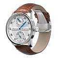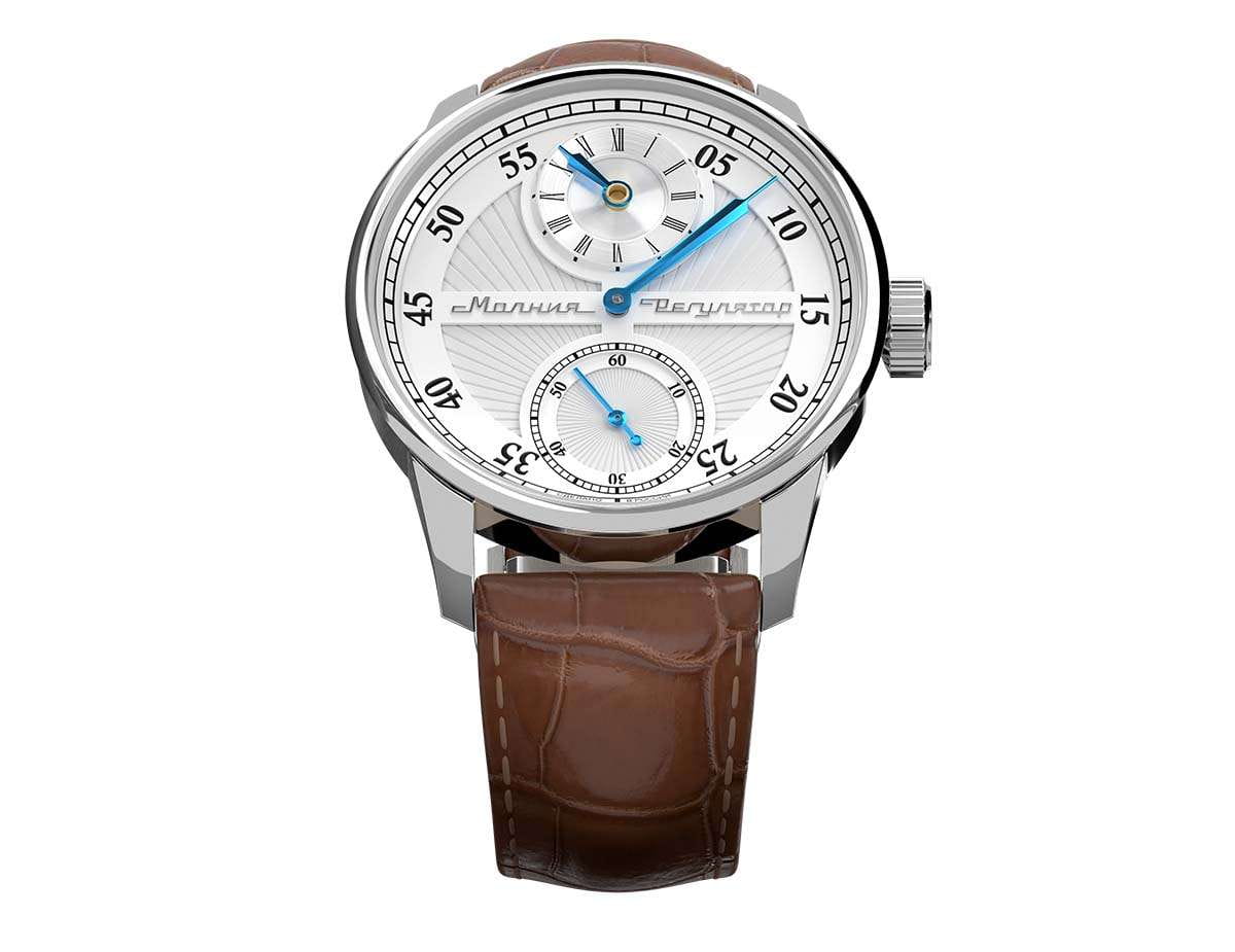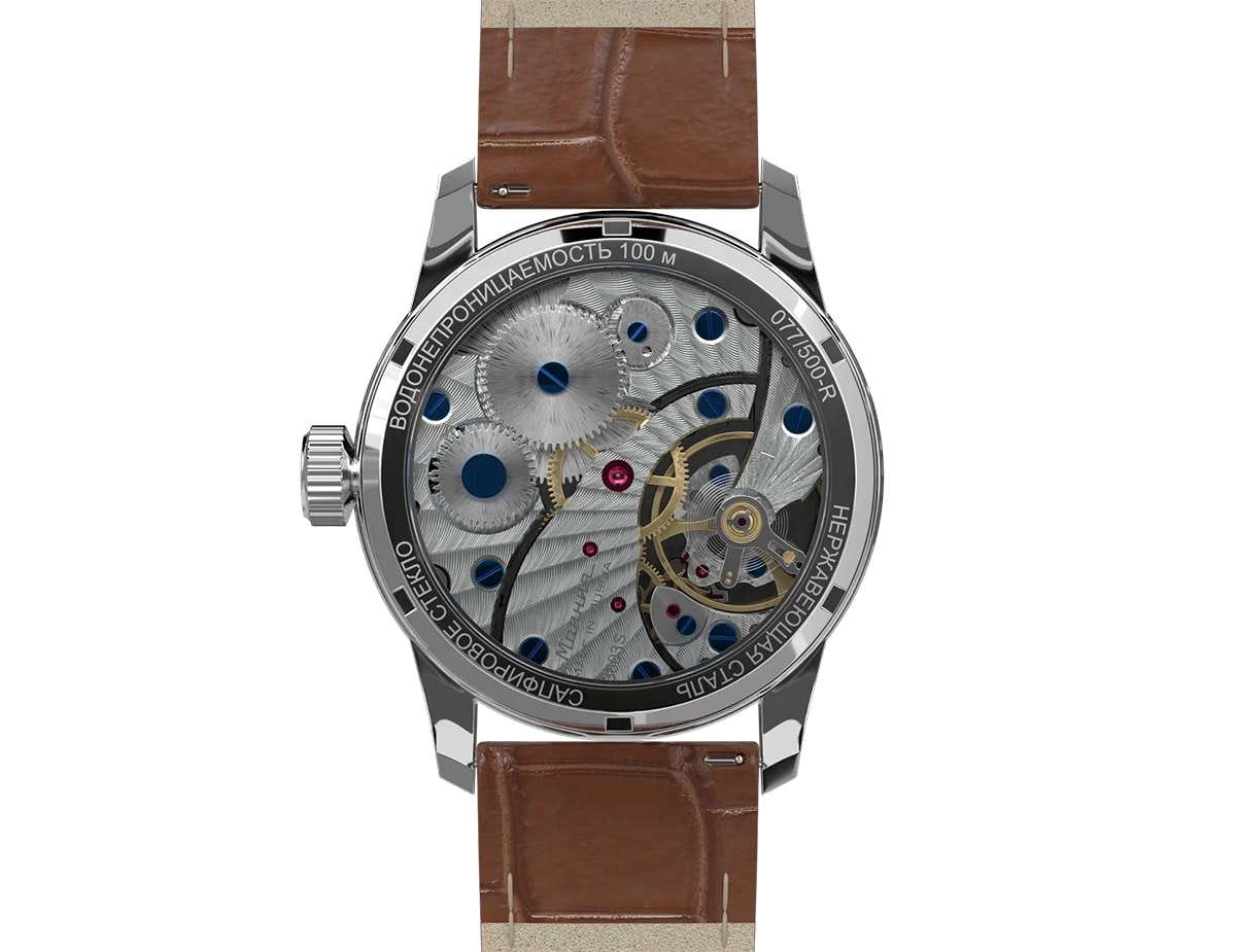 Мужские механические часы с ручным подзаводом — это аксессуар от легендарного бренда «МОЛНИЯ», созданный на Челябинском часовом заводе. Корпус диаметром 42 мм выполнен из нержавеющей стали. Циферблат оформлен индексами и стрелками. Малая секундная стрелка вынесена на отдельный субциферблат. Циферблат защищён сапфировым стекломСапфировое стеклоПрочный и надёжный материал из кристалла сапфира синтетического происхождения, характеризующийся особой твёрдостью и устойчивостью к царапинам и повреждениям.. Механизм — мануфактурный калибр 3603RS, полностью собранный вручную, с декорированными деталями, которые видны через прозрачную заднюю крышку. Часы оснащены кожаным ремешком коричневого цвета с раскладной застёжкойРаскладная застёжкаТакой тип застёжки используется только на браслетах из металла. Она никогда не раскрывается полностью, происходит разделение на 2 и более частей. Раскладывающая застёжка снизит вероятность потери часов к минимуму.. Водонепроницаемость 100 м позволяет использовать часы для плавания и повседневного ношения. Идеальный выбор для тех, кто ценит российское качество и традиции.