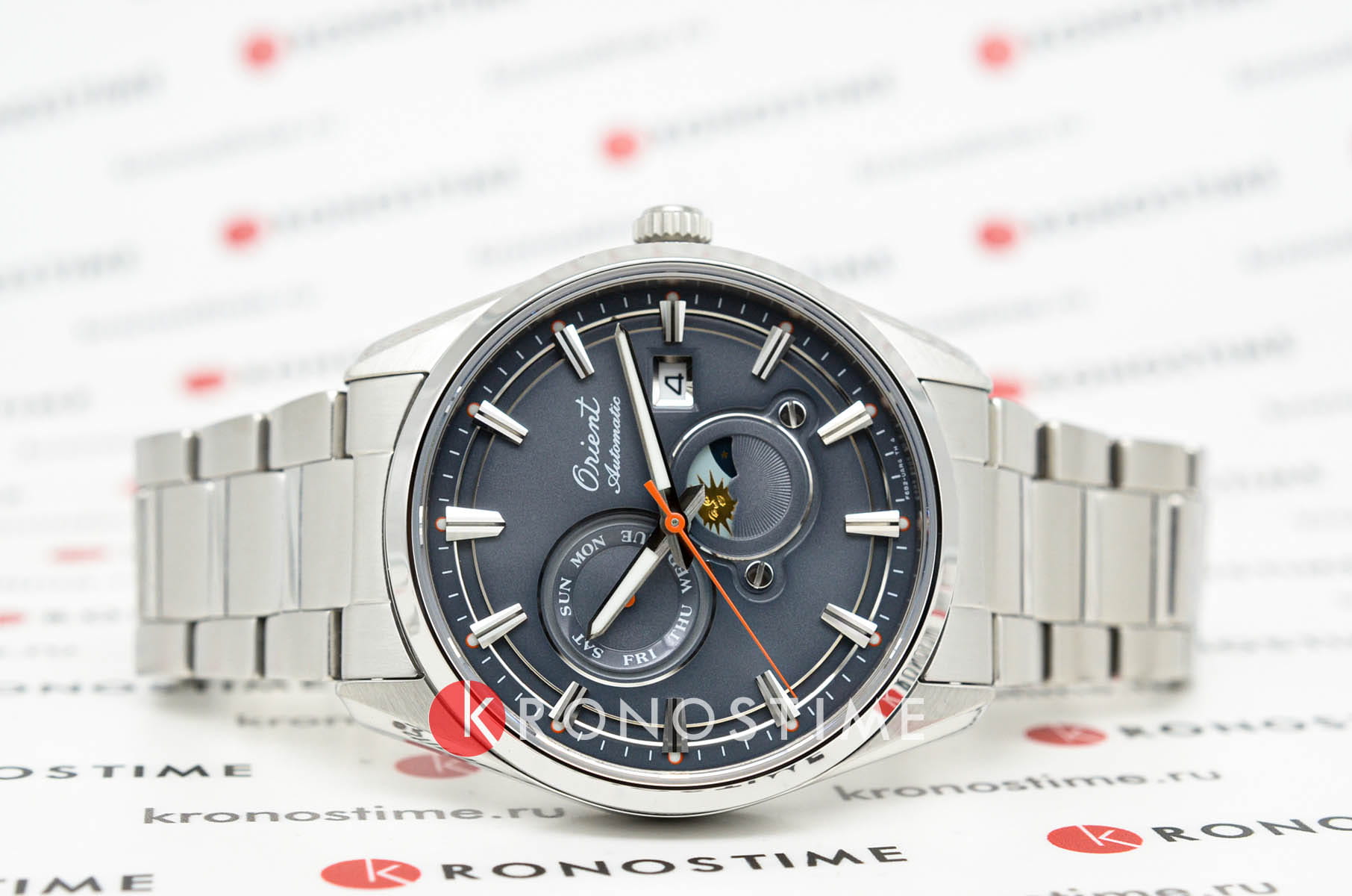 Часы Orient Sun & Moon RA-AK0311N — это изысканное сочетание элегантности и функциональности. Корпус из нержавеющей стали диаметром 41,5 мм защищён сапфировым стекломСапфировое стеклоПрочный и надёжный материал из кристалла сапфира синтетического происхождения, характеризующийся особой твёрдостью и устойчивостью к царапинам и повреждениям., которое обеспечивает долговечность и защиту от царапин. Глубокий серый циферблат с изящными деталями, отображающим смену дня и ночи. Также на циферблате представлены указатель дня недели и окошко даты, что подчёркивает практичность модели. Автоматический механизм Orient Calibre F6722 обеспечивает высокую точность и удобство настройки времени. Запас хода до 40 часов делает часы надёжным спутником в повседневной жизни. Элегантный браслет из нержавеющей стали оснащён раскладной застёжкойРаскладная застёжкаТакой тип застёжки используется только на браслетах из металла. Она никогда не раскрывается полностью, происходит разделение на 2 и более частей. Раскладывающая застёжка снизит вероятность потери часов к минимуму., обеспечивающей комфортное ношение и надёжную фиксацию на запястье. Водонепроницаемость до 50 метров защищает часы от случайных брызг, делая их подходящими для повседневного использования. Стрелки и метки с люминесцентным покрытиемЛюминесцентное покрытиеПозволяет считывать показания времени в темноте. Производители наносят на стрелки, часовые индексы, безель или поверхность циферблата светонакопительный состав, дающий холодное свечение. позволяющие легко определять время даже в темноте. Orient Sun & Moon RA-AK0311N — это выбор для тех, кто ценит стиль, качество и универсальность. Лимитированная серия.
