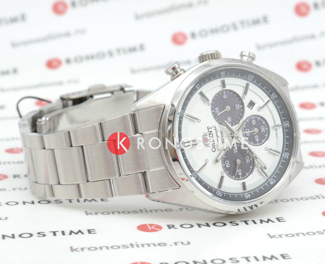 Мужские наручные часы-хронографХронографФункция позволяет измерять отрезки времени с особой точностью: часы, минуты, секунды. Верным признаком хронографа является наличие на циферблате 3 дополнительных окошек-счётчиков. Orient WV0041TX из коллекции Neo 70's Solar Chronograph Panda сочетают в себе ретро-дизайн 70-х годов и современные технологии. Модель обладает круглым корпусом диаметром 42 мм, изготовленным из нержавеющей стали, что обеспечивает высокую устойчивость к внешним воздействиям [[3]]. Браслет выполнен из нержавеющей стали на раскладной застёжкеРаскладная застёжкаТакой тип застёжки используется только на браслетах из металла. Она никогда не раскрывается полностью, происходит разделение на 2 и более частей. Раскладывающая застёжка снизит вероятность потери часов к минимуму., гарантирующей комфортное ношение и безопасность. Белый циферблат, напоминающий "панду", оснащен тонкими индексами для лучшей читаемости времени и хронографическими подциферблатами. Для защиты применяется минеральное стекло, обеспечивающее прочную защиту от царапин. Часы работают на солнечном кварцевом механизме, который питается от естественного и искусственного света, исключая необходимость замены батарейки. Модель также является хронографом, оснащенным функцией секундомераСекундомерСекундоме́р — прибор, способный измерять интервалы времени с точностью до долей секунды., делая её идеальной для активного образа жизни. Водонепроницаемость часов достигает 10 атмосфер (100 метров), что позволяет использовать их во время плавания и других водных видов спорта, однако не рекомендуется для глубоководного дайвинга.