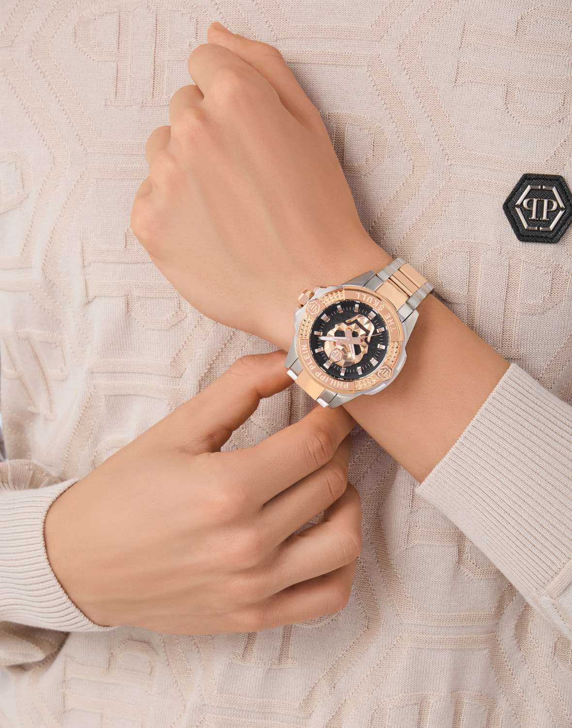 Мужские кварцевые часы Philipp Plein THE $KULL PWAAA2925 – дерзкое заявление любви к роскоши и бунтарскому стилю. Диаметр круглого корпуса из прочной нержавеющей стали равен 44 мм. Минеральное стеклоМинеральное стеклоМинеральное стекло представляет собой искусственно выращенный минерал кварца. Такое стекло отличается особой устойчивостью к повреждениям и царапинам. Уступает по некоторым качествам сапфировому стеклу. защищает циферблат от царапин. БезельБезельВнешний ободок, закрепляющий стекло. В спортивных часах так называется поворотное кольцо с делениями на циферблате, выполняет роль таймера – замеряет отрезки времени на шкале. Неподвижный безель – элемент декора. Однонаправленно вращающийся безель на дайверских часах позволяет фиксировать моменты погружения и выныривания на поверхность. с PVD-покрытиемPVDУльтратонкое покрытие наносится в технике вакуумного напыления, сочетает в себе нитрид титана особой прочности со слоем золота или оксида хрома. Несёт в себе декоративную или защитную функцию.. Стальной браслет на застёжке «бабочка» с кнопкамиЗастёжка "бабочка"Такой вид застёжки дополняется предохранителями, помогающими избежать случайного раскрытия браслета. Обладают изящным исполнением. с PVD-покрытиемPVDУльтратонкое покрытие наносится в технике вакуумного напыления, сочетает в себе нитрид титана особой прочности со слоем золота или оксида хрома. Несёт в себе декоративную или защитную функцию. обеспечивает надёжную фиксацию и комфортное ношение. Люминесцентное покрытиеЛюминесцентное покрытиеПозволяет считывать показания времени в темноте. Производители наносят на стрелки, часовые индексы, безель или поверхность циферблата светонакопительный состав, дающий холодное свечение. стрелок позволит следить за временем даже в полной темноте. Яркий дизайн с узнаваемым логотипом Plein и смелыми акцентами не оставит вас незамеченным. Идеальный аксессуар для тех, кто ценит индивидуальность и не боится выделяться из толпы.