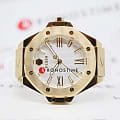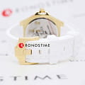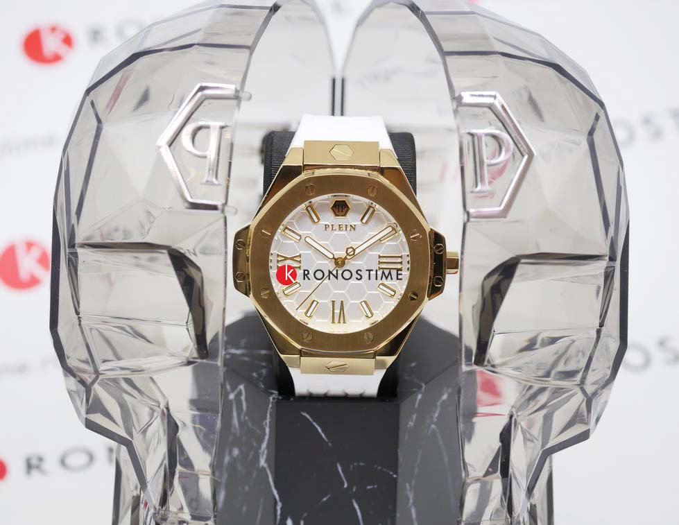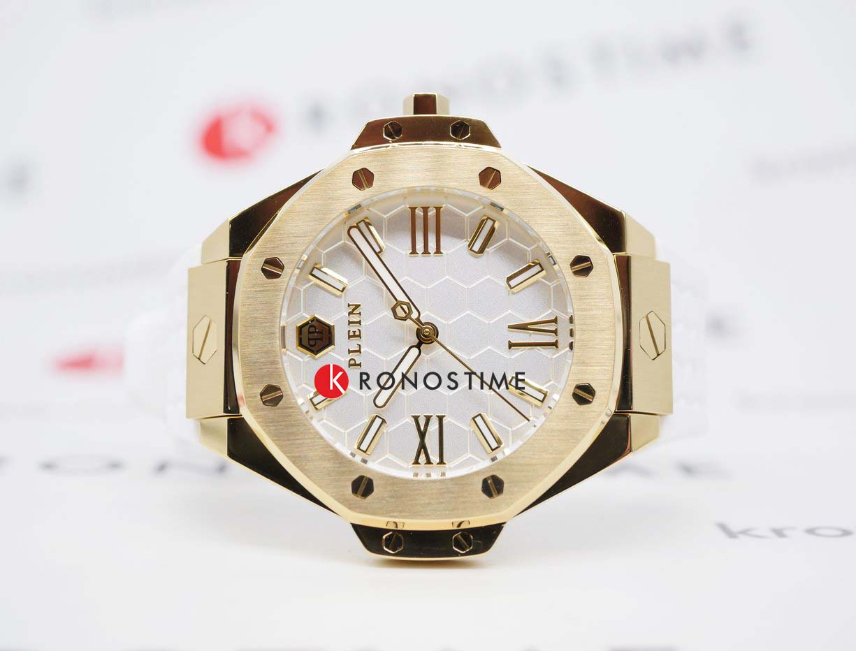 Philipp Plein Plein Lady Royal PWBDA0224 — это женские часы, сочетающие элегантность и практичность. Корпус диаметром 39 мм выполнен из нержавеющей стали с золотистым PVD-покрытиемPVDУльтратонкое покрытие наносится в технике вакуумного напыления, сочетает в себе нитрид титана особой прочности со слоем золота или оксида хрома. Несёт в себе декоративную или защитную функцию., что придаёт часам роскошный вид. Минеральное стеклоМинеральное стеклоМинеральное стекло представляет собой искусственно выращенный минерал кварца. Такое стекло отличается особой устойчивостью к повреждениям и царапинам. Уступает по некоторым качествам сапфировому стеклу. защищает циферблат от царапин и повреждений, сохраняя его безупречный внешний вид. Белый циферблат с римскими цифрами подчёркивает классический стиль. Часы оснащены кварцевым механизмом, который обеспечивает точность хода. Водозащита до 5 ATM (50 метров) позволяет использовать часы в повседневной жизни. Ремешок выполнен из белого силикона, обеспечивая комфортное ношение. Застёжка с классической пряжкой гарантирует надёжную фиксацию. Ширина ремешка 20 мм идеально гармонирует с размером корпуса, завершая изысканный образ.