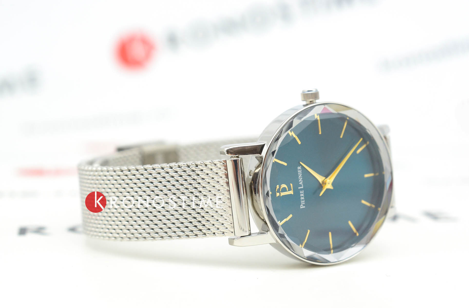 Pierre Lannier 009M671 Multiples — элегантная женская модель, в которой сочетаются современный стиль и утончённая простота. Корпус диаметром 30 мм выполнен из нержавеющей стали, создающим ощущение тепла и благородства. Циферблат с эффектом солнечных лучей украшен тонкими золотистыми стрелками и часовыми метками. Композиция оформлена минималистично, подчёркивая утончённость формы и цветовое равновесие. Циферблат защищён прочным минеральным стекломМинеральное стеклоМинеральное стекло представляет собой искусственно выращенный минерал кварца. Такое стекло отличается особой устойчивостью к повреждениям и царапинам. Уступает по некоторым качествам сапфировому стеклу., которое надёжно противостоит повседневным повреждениям. Внутри — точный японский кварцевый механизм, отличающийся стабильностью и долговечностью. Стальной браслет миланского плетения на раскладном замкеРаскладной замокДанный вариант застежки используется только на часах с металлическим браслетом. Отличительная особенность такого крепления в том, что длина браслета становится универсальной и вы можете самостоятельно отрегулировать нужный вам размер – застежка просто двигается по браслету часов., обеспечивающей комфортное ношение. Водонепроницаемость до 5 ATM делает часы устойчивыми к случайным брызгам и дождю. Multiples — это сочетание выразительного цвета, утончённого блеска и точности, подходящее как для повседневного образа, так и для особых случаев.