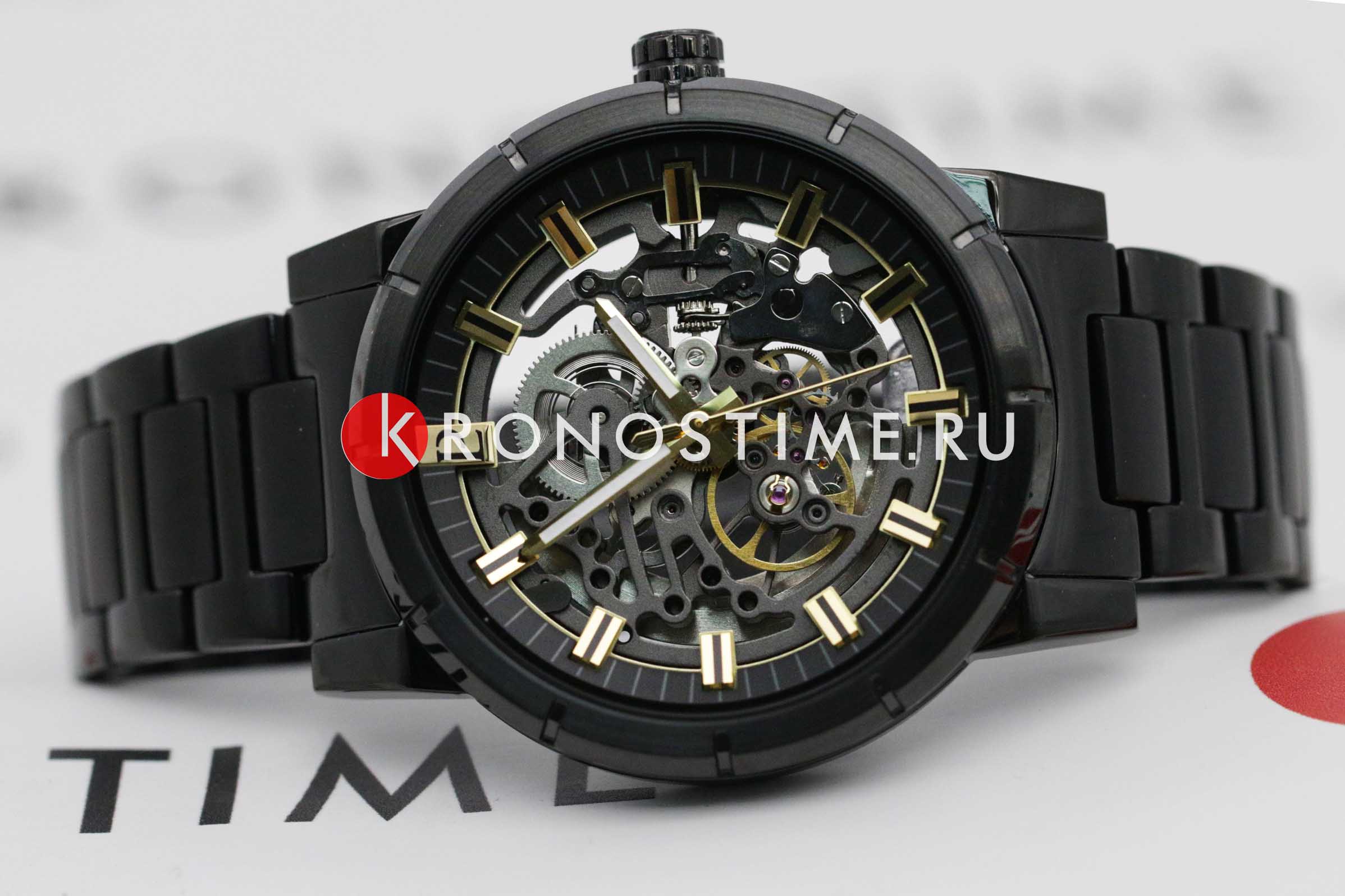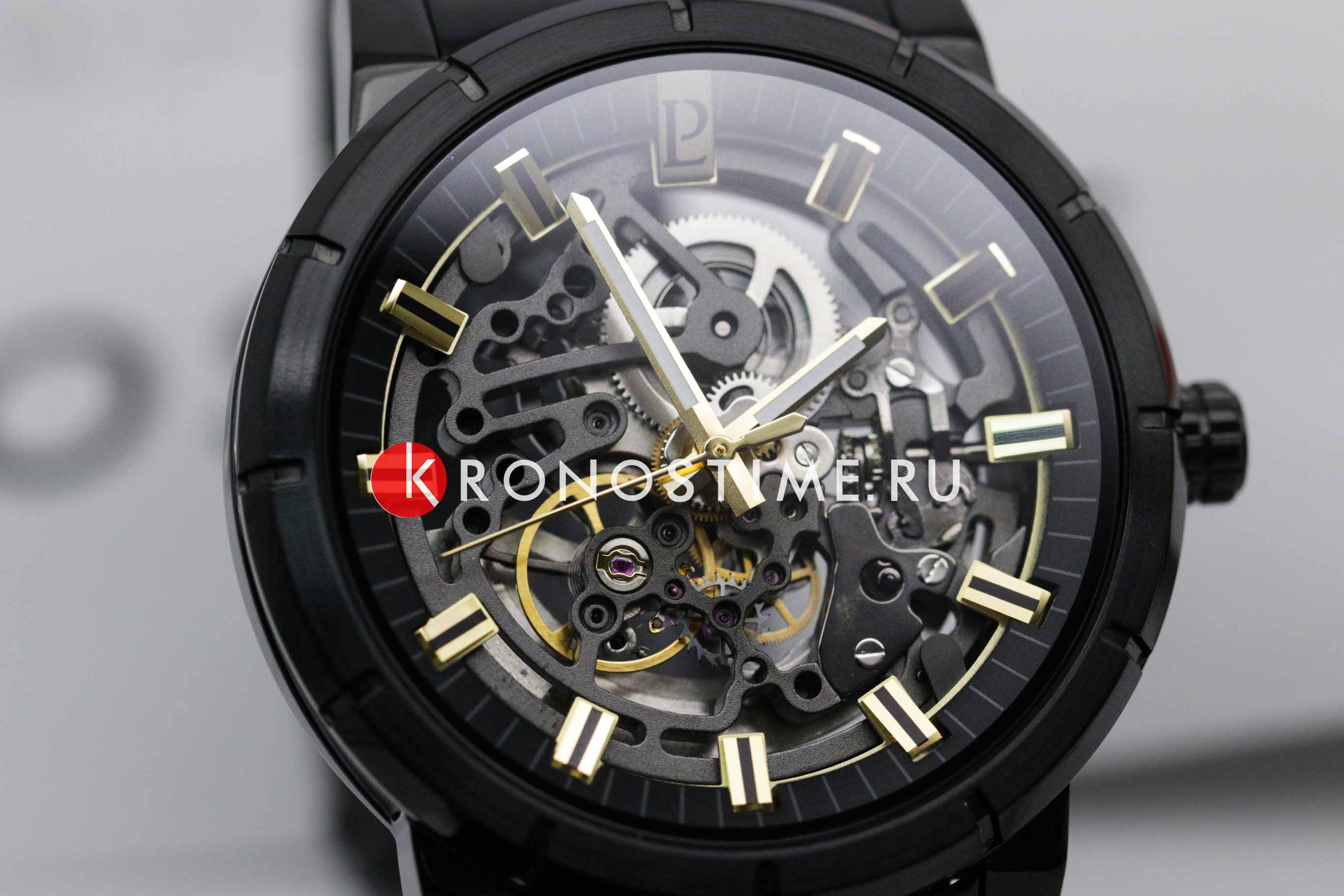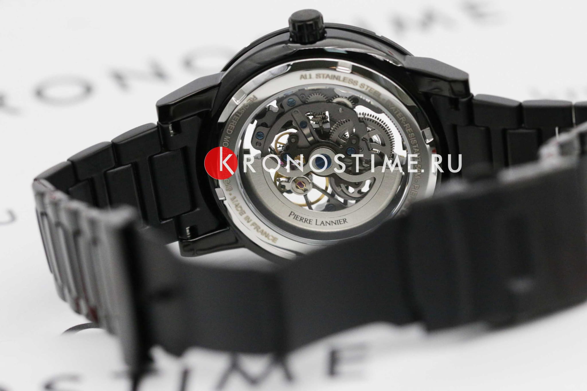Мужские механические часы с автоподзаводом Pierre Lannier Automatic 325C439. Минеральное стеклоМинеральное стеклоМинеральное стекло представляет собой искусственно выращенный минерал кварца. Такое стекло отличается особой устойчивостью к повреждениям и царапинам. Уступает по некоторым качествам сапфировому стеклу. устойчивое к мелким механическим повреждениям. Центральные часовая, минутная и секундная стрелки. Корпус и браслет выполнены из нержавеющей стали с IP-покрытиемIP-покрытиеМетод ионного напыления. Демонстрирует повышенную устойчивость к истиранию, окислению и химическим веществам. Под воздействием высокого давления и температуры около 1500°C молекулы металла надёжно соединяются с частицами корпуса часов.. Водостойкость: 50 метров, позволит защитить корпус от случайных брызг или капель дождя. Стрелки с люминесцентным покрытиемЛюминесцентное покрытиеПозволяет считывать показания времени в темноте. Производители наносят на стрелки, часовые индексы, безель или поверхность циферблата светонакопительный состав, дающий холодное свечение.. Черный скелетонизированный циферблат. Браслет на раскладной застёжкеРаскладная застёжкаТакой тип застёжки используется только на браслетах из металла. Она никогда не раскрывается полностью, происходит разделение на 2 и более частей. Раскладывающая застёжка снизит вероятность потери часов к минимуму.. Прозрачная задняя крышка.