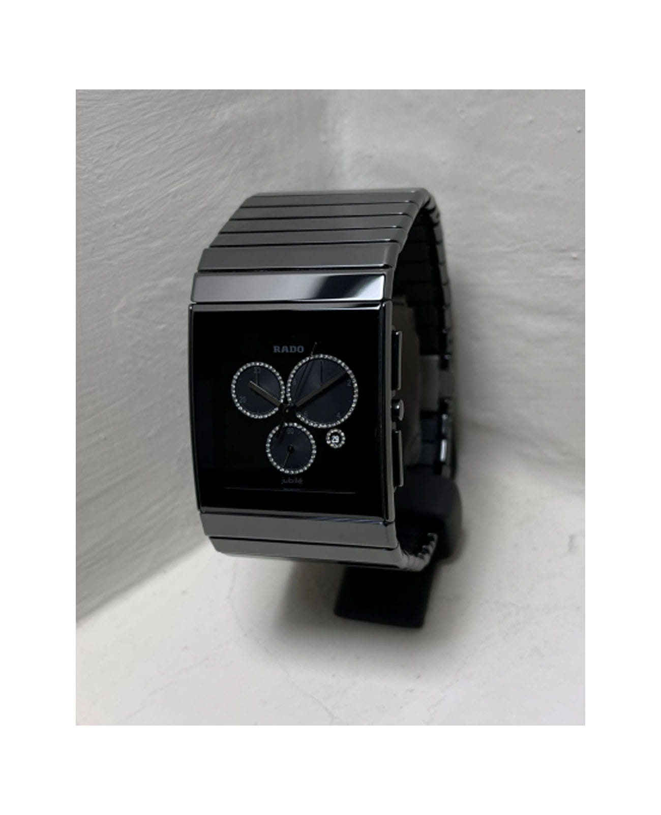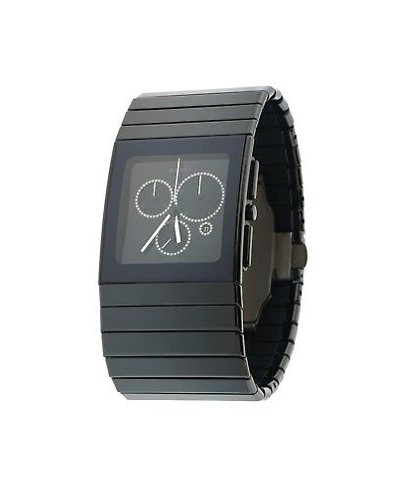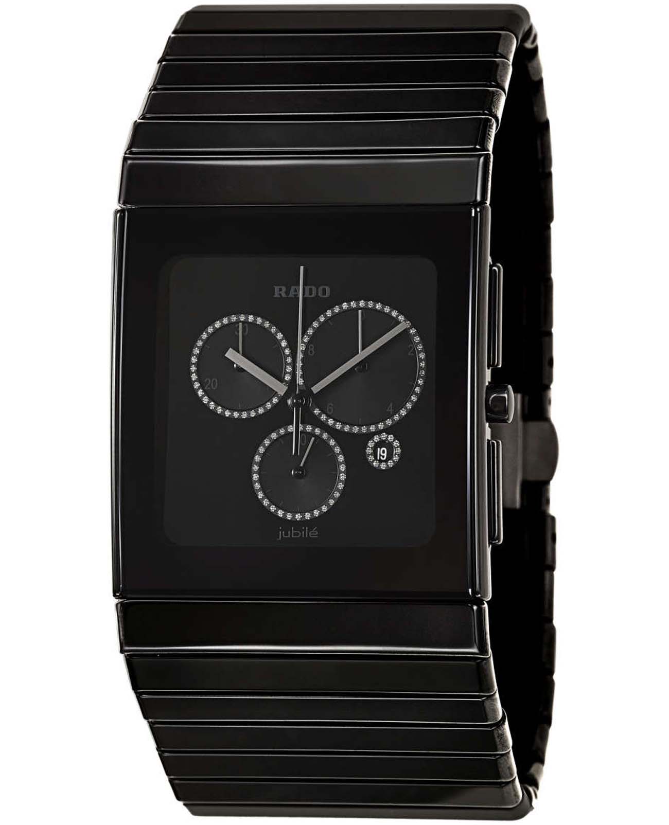 Мужские швейцарские наручные часы- хронографХронографФункция позволяет измерять отрезки времени с особой точностью: часы, минуты, секунды. Верным признаком хронографа является наличие на циферблате 3 дополнительных окошек-счётчиков. Rado Ceramica R21714702, кварцевый механизм с высокой точностью. Сапфировое стеклоСапфировое стеклоПрочный и надёжный материал из кристалла сапфира синтетического происхождения, характеризующийся особой твёрдостью и устойчивостью к царапинам и повреждениям. устойчивое к появлению царапин, обладающее высокой прозрачностью. Класс водозащиты: 30 метров, позволит защитить корпус от случайных брызг или капель дождя. Браслет из высокотехнологичной плазменной керамикиВысокотехнологичная плазменная керамикаИнновационный материал, технология запатентована. Выплавление керамики осуществляется в печи при 20 000 °C, белоснежный материал под воздействием ультравысокой температуры приобретает уникальный блеск, присущий металлам. на раскладной застёжкеРаскладная застёжкаТакой тип застёжки используется только на браслетах из металла. Она никогда не раскрывается полностью, происходит разделение на 2 и более частей. Раскладывающая застёжка снизит вероятность потери часов к минимуму..