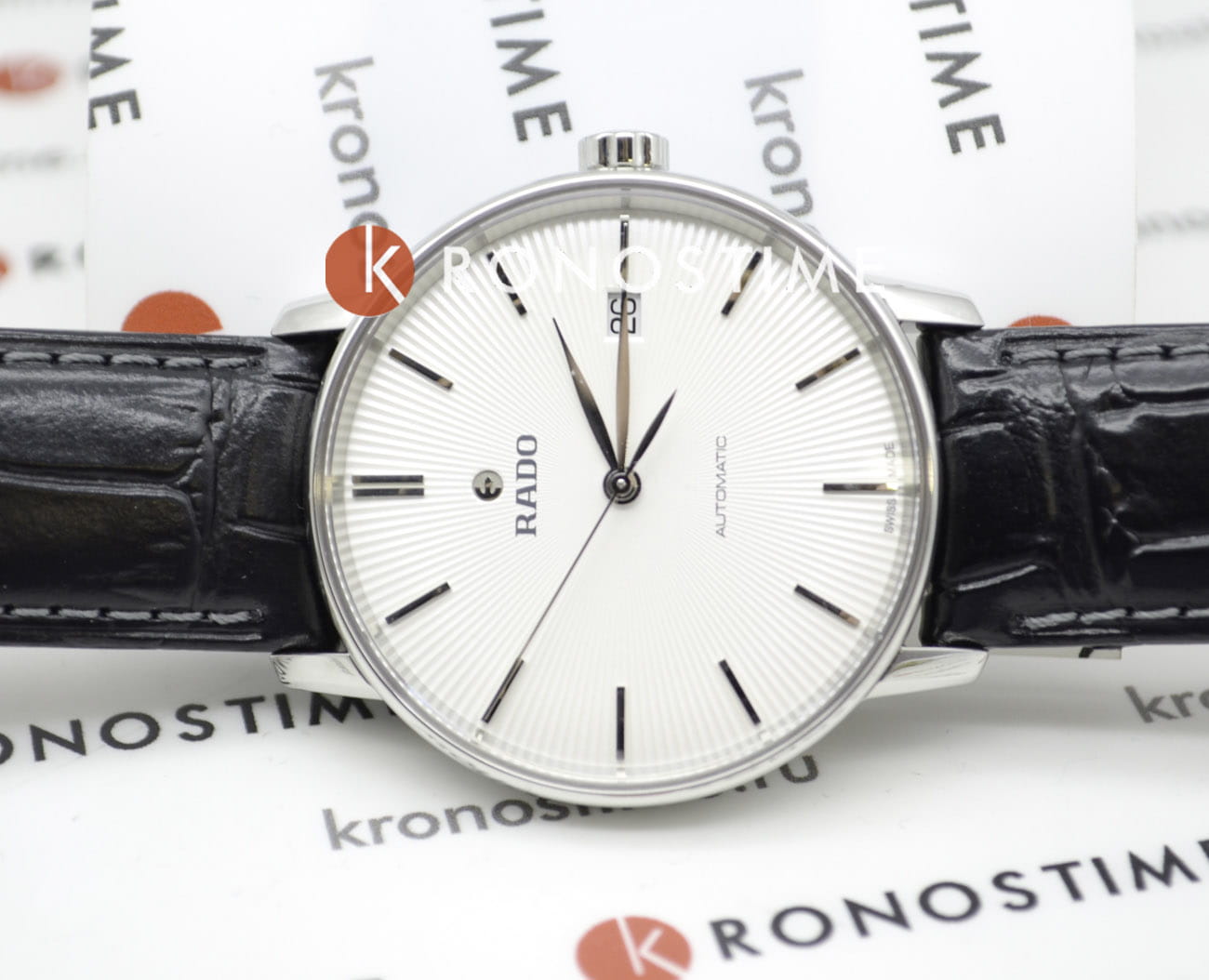 Мужские швейцарские механические часы с автоподзаводом Rado Coupole R22860015. Корпус часов изготовлен из нержавеющей стали. Сапфировое стеклоСапфировое стеклоПрочный и надёжный материал из кристалла сапфира синтетического происхождения, характеризующийся особой твёрдостью и устойчивостью к царапинам и повреждениям. устойчивое к мелким механическим повреждениям. Кожаный ремешок с раскладной застёжкойРаскладная застёжкаТакой тип застёжки используется только на браслетах из металла. Она никогда не раскрывается полностью, происходит разделение на 2 и более частей. Раскладывающая застёжка снизит вероятность потери часов к минимуму.. Класс водозащиты: 50 метров, позволит защитить корпус от случайных брызг или капель дождя. Окошко даты находится в положении 3 часа.
