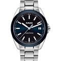 Мужские кварцевые часы Rado HyperChrome — это современное воплощение точности и мастерства материалов. Корпус диаметром 41,5 мм и толщиной 11,7 мм выполнен из полированной и матовой нержавеющей стали. БезельБезельВнешний ободок, закрепляющий стекло. В спортивных часах так называется поворотное кольцо с делениями на циферблате, выполняет роль таймера – замеряет отрезки времени на шкале. Неподвижный безель – элемент декора. Однонаправленно вращающийся безель на дайверских часах позволяет фиксировать моменты погружения и выныривания на поверхность. изготовлен из высокотехнологичной керамикиВысокотехнологичная керамикаИнновационный запатентованный Rado материал с гладкой или матовой поверхностью. Керамика за счёт кристаллической структуры обладает повышенной устойчивостью от возникновения царапин. Материал способен принимать температуру тела человека, обеспечивая невероятный комфорт при ношении. синего цвета, придающей часам прочность и изысканность. Циферблат синего цвета с лакированным покрытием оформлен индексами и стрелками с люминесцентным покрытиемЛюминесцентное покрытиеПозволяет считывать показания времени в темноте. Производители наносят на стрелки, часовые индексы, безель или поверхность циферблата светонакопительный состав, дающий холодное свечение. Super-Luminova®. Особенность подсветки — зелёное свечение метки 12 часов и минутной стрелки, и синее — остальных индексов и часовой стрелки, что обеспечивает интуитивное считывание времени в темноте. Циферблат защищён выпуклым сапфировым стекломСапфировое стеклоПрочный и надёжный материал из кристалла сапфира синтетического происхождения, характеризующийся особой твёрдостью и устойчивостью к царапинам и повреждениям. с антибликовым покрытиемАнтибликовое покрытиеСлой оксида металла в 0,13-0,3 микрон, благодаря которому стекло часов не бликует и не отражает свет. Антибликовое покрытие уменьшает отражение света в 10 раз, обеспечивая отличную читаемость показателей циферблата. на внутренней стороне. Механизм — кварцевый. Окошко даты расположено в положении 3 часов. Часы оснащены трёхрядным стальным браслетом с центральными звеньями и трёхсекционной застёжкой с системой быстрой регулировки. Водонепроницаемость 150 м позволяет использовать часы для плавания и повседневного ношения. Идеальный выбор для тех, кто ценит инновации, точность и смелый дизайн.