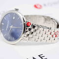 Циферблат синего цвета украшен центральными часовой и минутной стрелками, а также имеет удобную индикацию даты в позиции 3 часа. Для обеспечения видимости в любых условиях часы оснащены сапфировым стекломСапфировое стеклоПрочный и надёжный материал из кристалла сапфира синтетического происхождения, характеризующийся особой твёрдостью и устойчивостью к царапинам и повреждениям. с антибликовым покрытиемАнтибликовое покрытиеСлой оксида металла в 0,13-0,3 микрон, благодаря которому стекло часов не бликует и не отражает свет. Антибликовое покрытие уменьшает отражение света в 10 раз, обеспечивая отличную читаемость показателей циферблата., устойчивым к царапинам и механическим повреждениям.